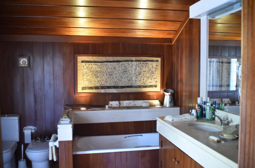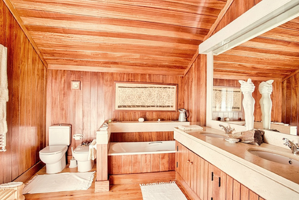- Main villa with an area of about 600 square meters, with 7 suites, one of them being the master suite with about 60 m2, a dining room, a living room, a kitchen with professional equipment, a guest toilet, a clothes room and a large leisure space, with snooker, projector space to accommodate 4 more people, as well as an extensive corridor leading to the bedrooms, living rooms and kitchen.