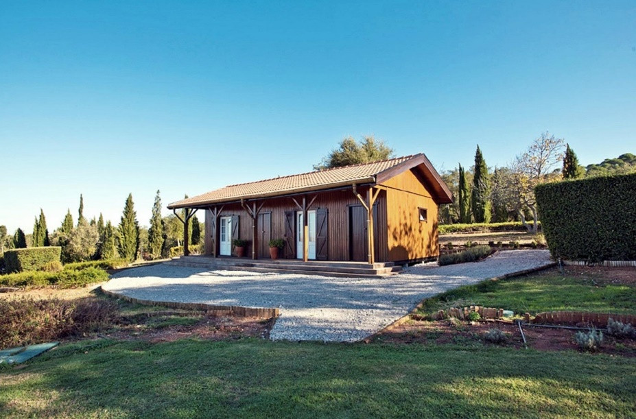 - A wooden house of about 50 m2, with two bedrooms, a bathroom and a storage area