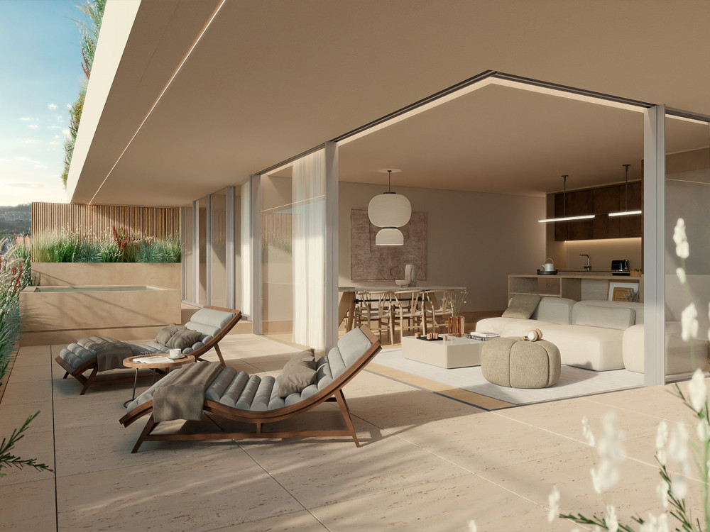 2 bedroom flat with 114 m2, terrace of 83 m2 with panoramic views over the Douro River, inserted in The View development.