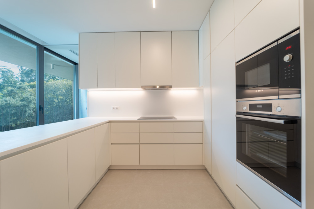 With premium finishes, such as white lacquered wood, oak-covered wood flooring, kitchen equipped with top range Bosch appliances, side by side refrigerator and freezer, induction hob, oven, microwave, extractor fan and dishwasher, guest bathroom, 2 suites with dressing room, 2 large bedrooms and full bathroom.