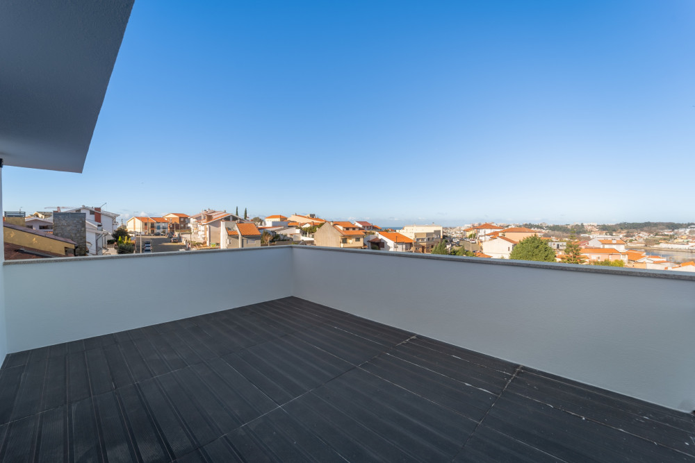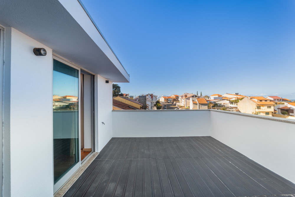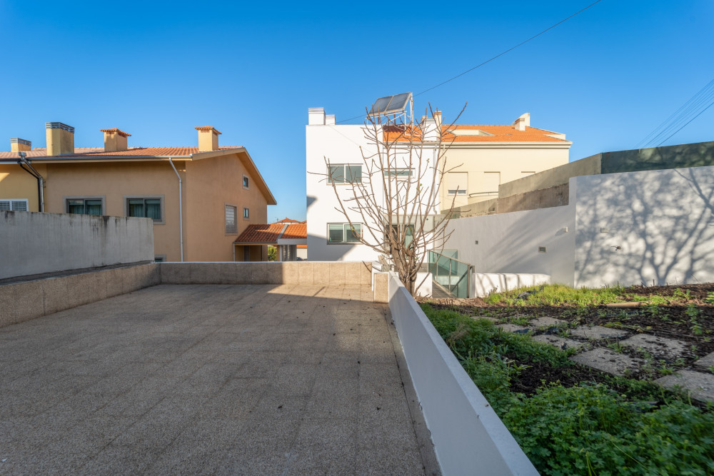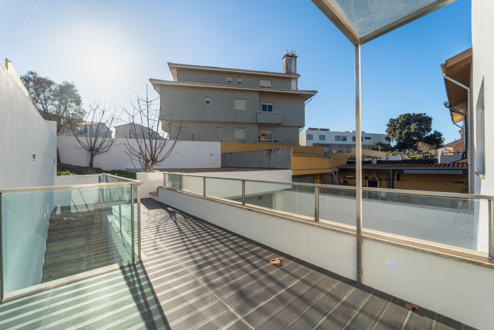 4 bedroom villa with 3 fronts, 251 m2 of gross area, with gardens and large terraces with 247 m2, closed garage for 2 cars and outdoor patio, located in a residential area close to the Douro River and with views of the river and sea