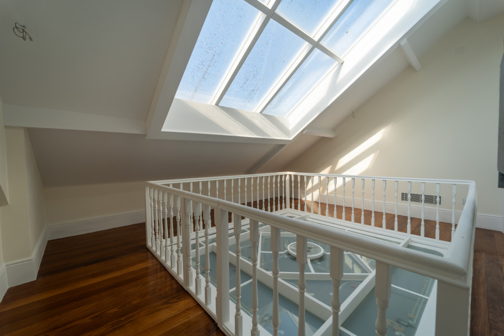 Access to the upper floors is via two staircases: a service staircase and the main staircase, of great grandeur. On the second and third floors, we find a luxurious master suite, accompanied by three more suites and two bedrooms, which are served by an elegant bathroom.