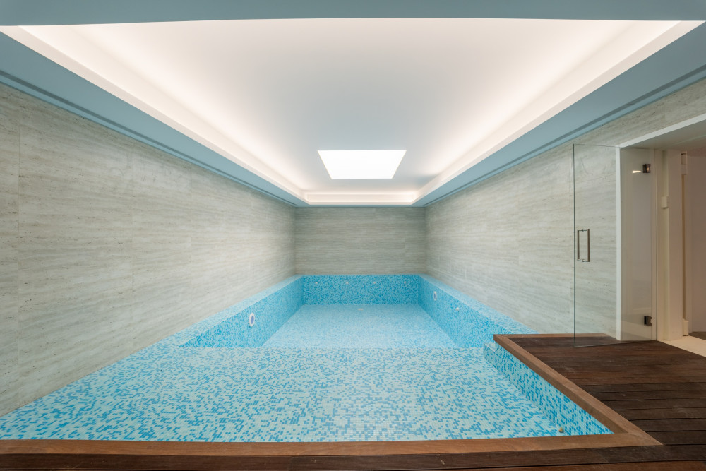 The basement offers several amenities, including a pantry, a cinema room, a wine cellar, an indoor swimming pool and a soundproofed gym and a fully equipped laundry, ensuring moments of leisure and well-being with total privacy.