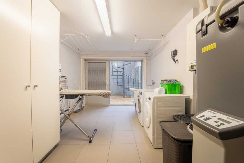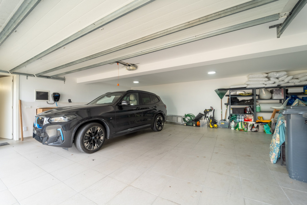 On the lower floor, there is a generously equipped laundry room, an excellent bedroom or office, both rooms with natural light and access to the outside space, a multipurpose room, storage area, full bathroom and a closed garage for 3 cars with an electric car charging system.