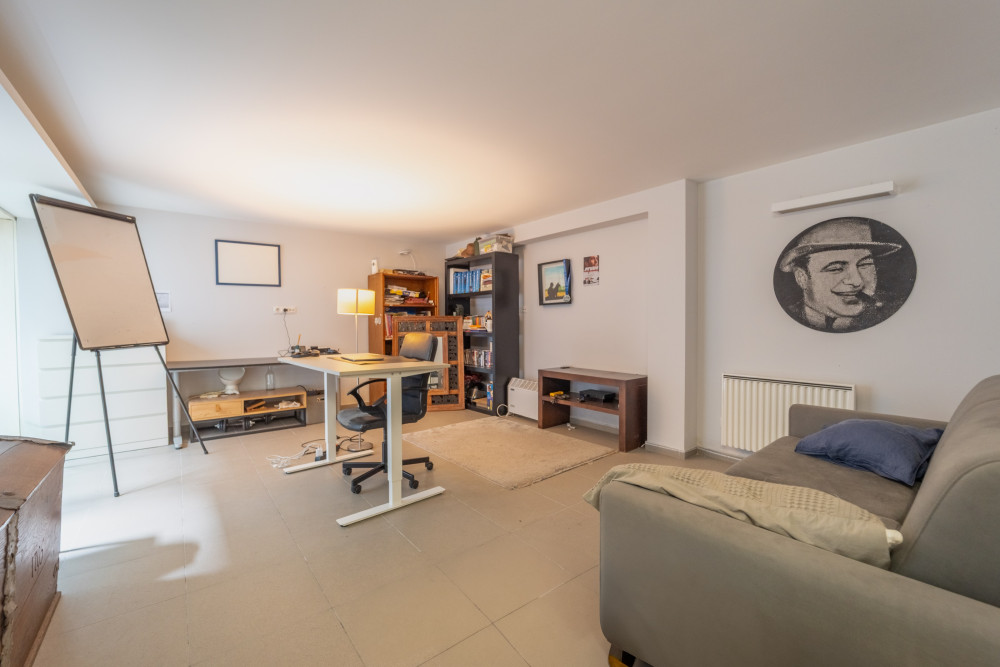 On the ground floor we have the entrance hall, the large living room with direct access to the terrace and garden facing south/west, a great fully equipped kitchen and a guest bathroom