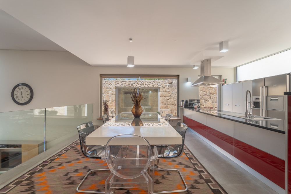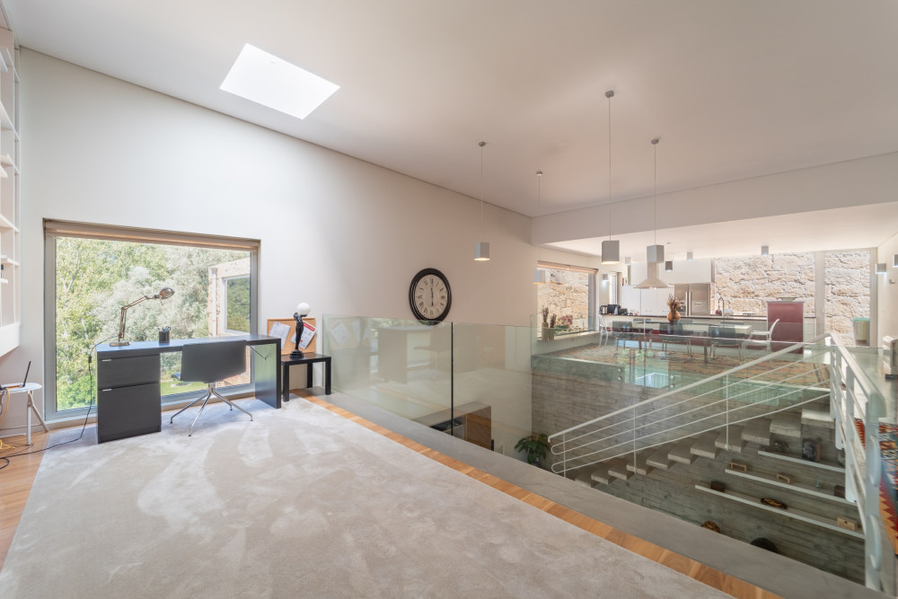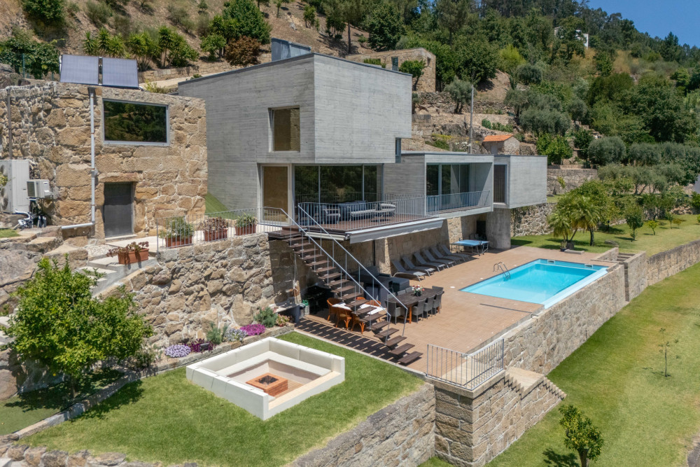 Composed of different levels in the style of the wine terraces so typical of the Douro wine lands. The architectural impact was one of the main precautions with the landscape project that takes advantage of the relief and provides excellent privacy with modern lines, layouts with wide spaces and strategic openings to privilege the impact of the exterior on the interior - either by the entry of light or by the natural landscape that provides authentic natural frames.