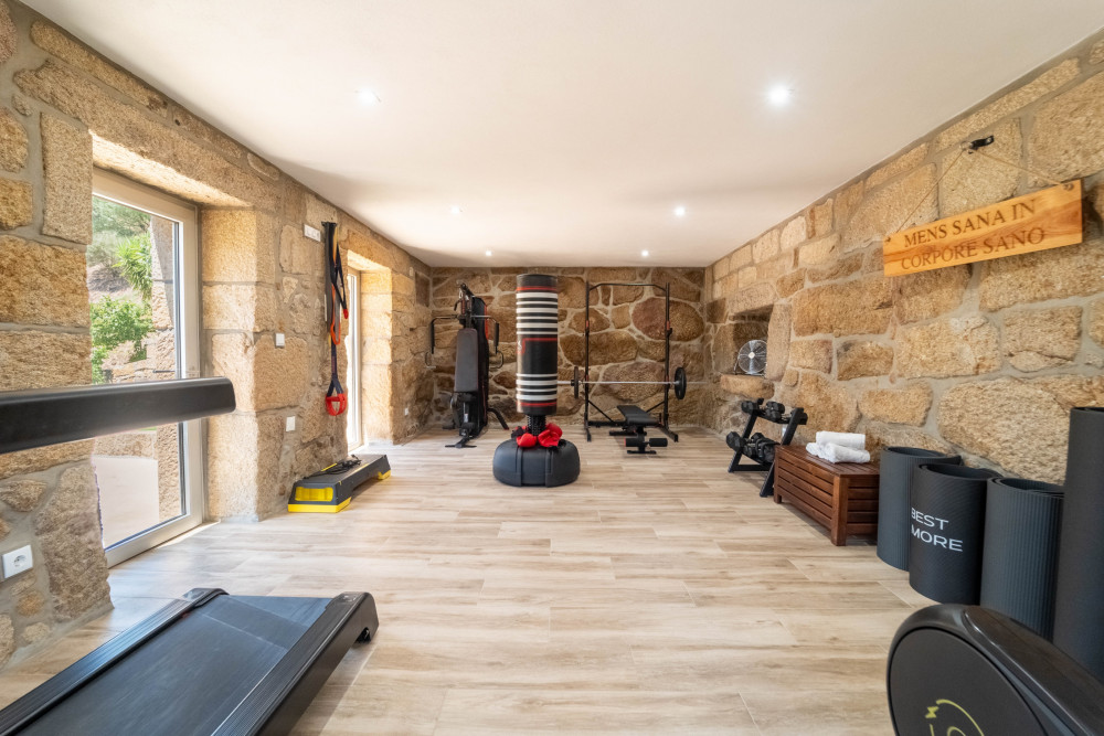 One of the architectural elements belonging to the property, at a higher level of this property, is a 1 bedroom guest house with suite, kitchenette, living room, a terrace that extends along this house and a gym equipped with a view over the river.