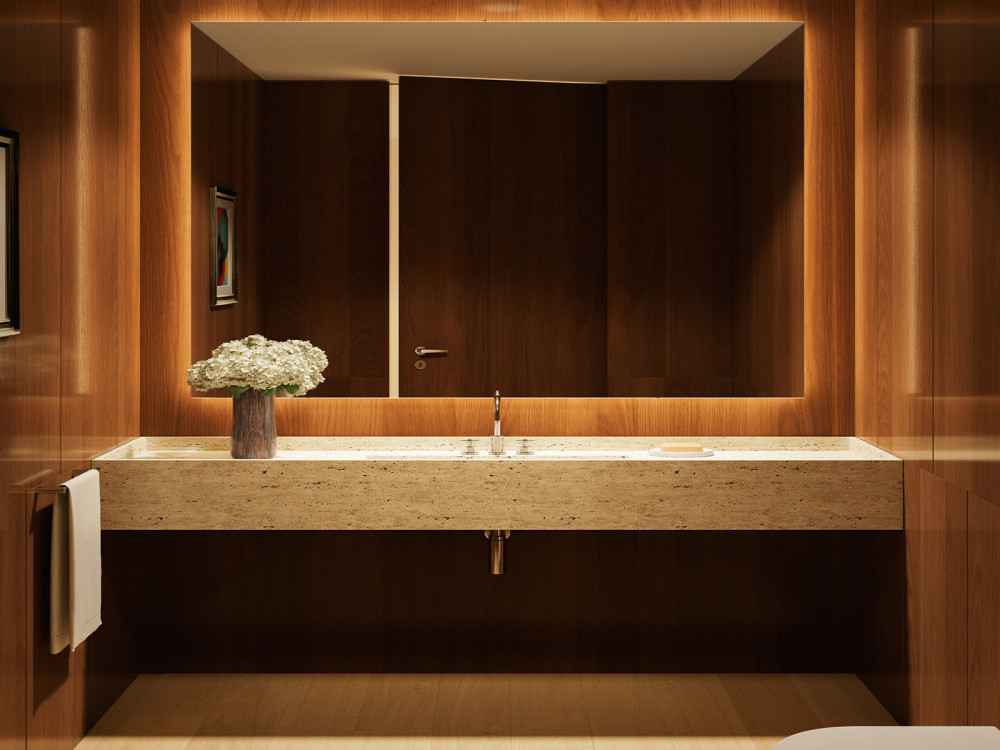 With three fronts, east, south and west, the duplex guarantees excellent light throughout the day. Spread over two floors, it clearly separates the social and private zones. The room, large and bright, communicates directly with the outside. The kitchen, equipped with Siemens appliances (or equivalent) — oven, induction hob, microwave, combined refrigerator, extractor hood and dishwasher — features Neolith ceramic countertops.