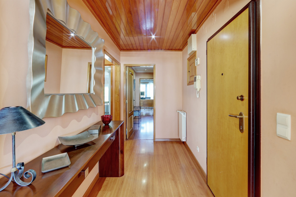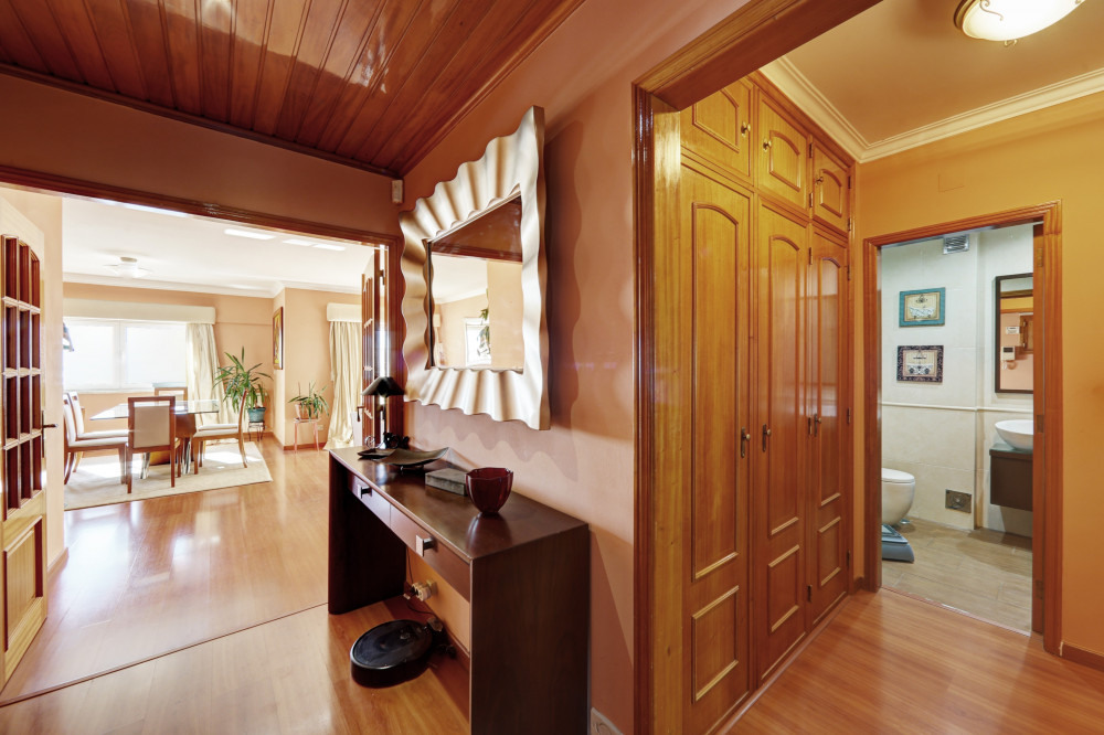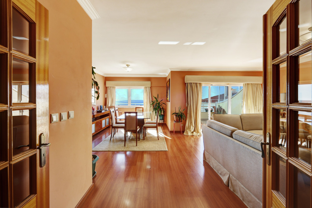 Inserted in a consolidated residential area, it consists of five bedrooms and generous areas. The flat, facing south, stands out for the luminosity and versatility of the spaces, providing a cosy and functional environment for large families. The main living room with 40 m2, is bathed in natural light and offers direct connection to the terrace with barbecue, allowing you to enjoy panoramic views of the sea.