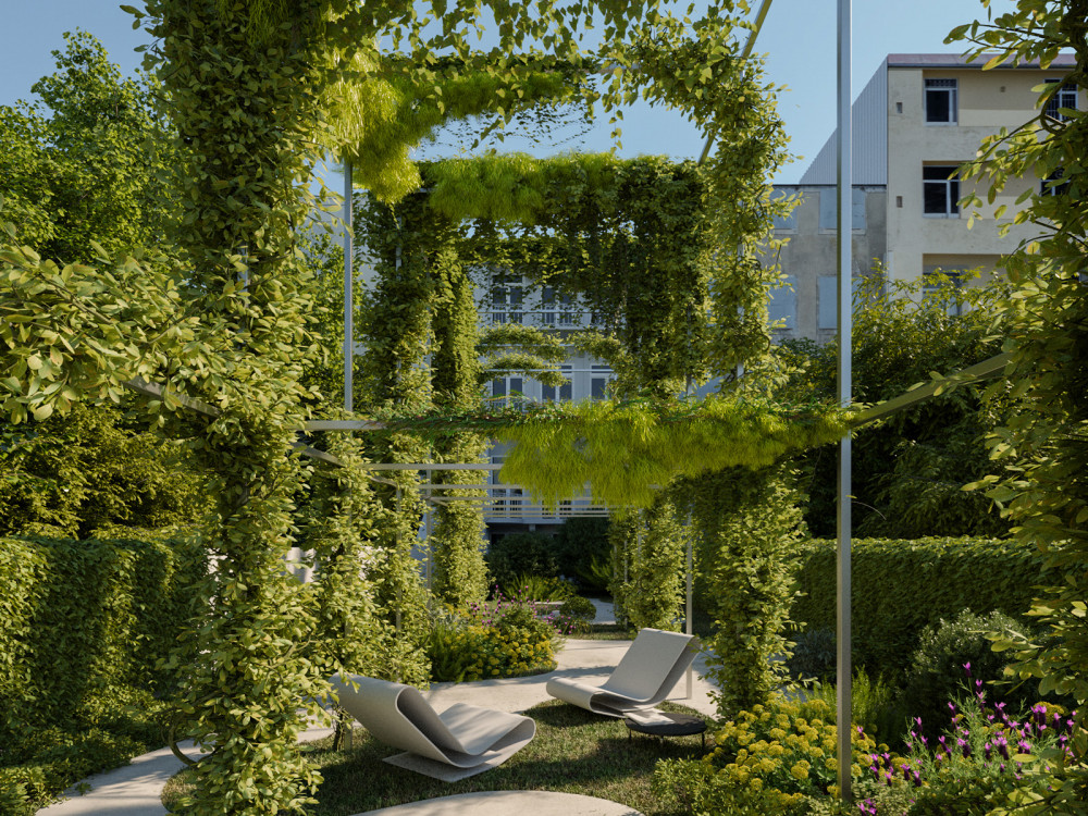At Aires Gouveia all apartments share a large outdoor landscaped garden designed to bring privacy and conviviality. Hidden nests and open areas alternate through a large, discreet pergola structure with growing plants accommodating a fully glazed fitness greenhouse and an outdoor jacuzzi.