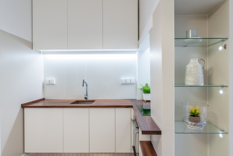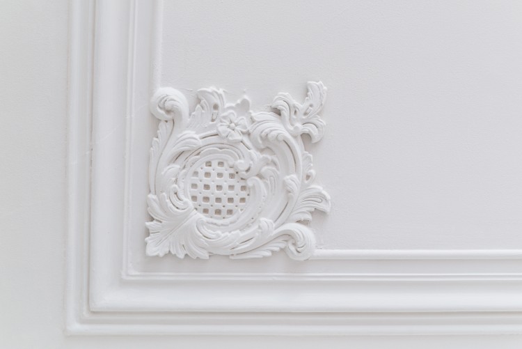 The apartment has original wooden floors and ornate ceiling stuccos, as well as the original kitchen tiles.