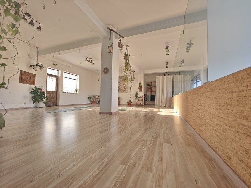 The property features on the ground floor a multipurpose room of 82 m², a reception area, and an additional 12 m² room. In the basement, there are four studios, two of them with 40 m², currently operating as a Pilates and Yoga studio and massage center, complemented by two bathrooms.