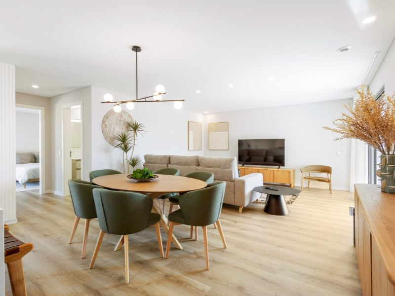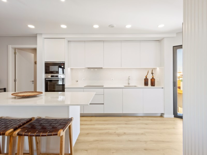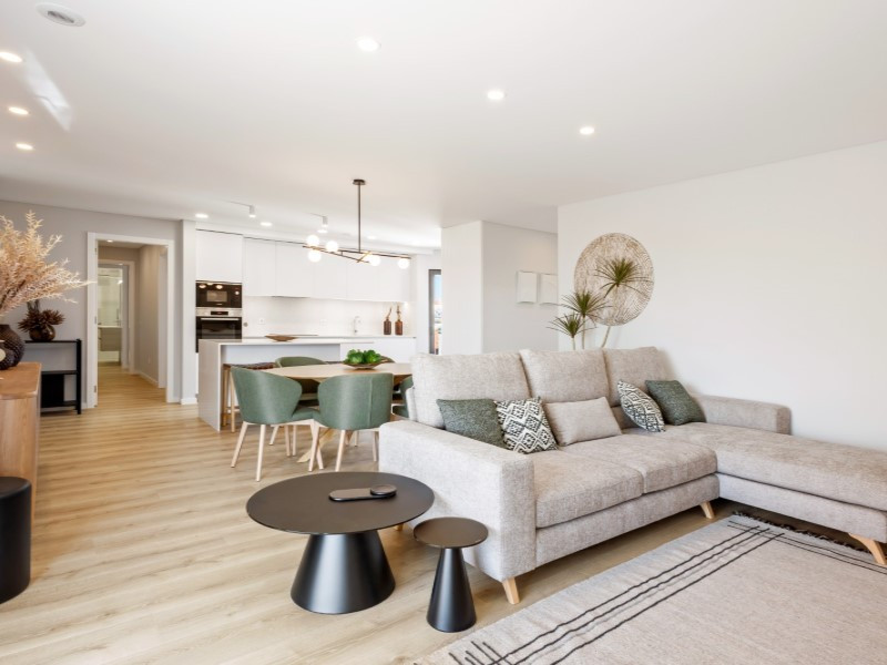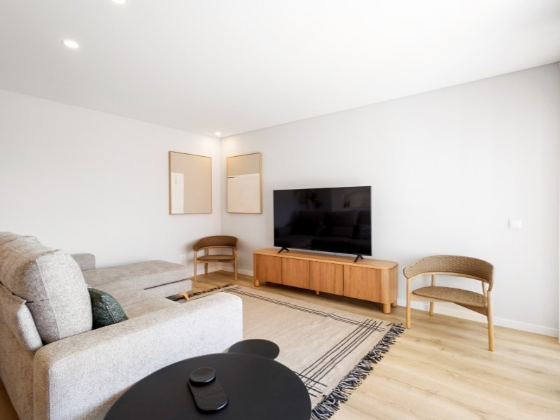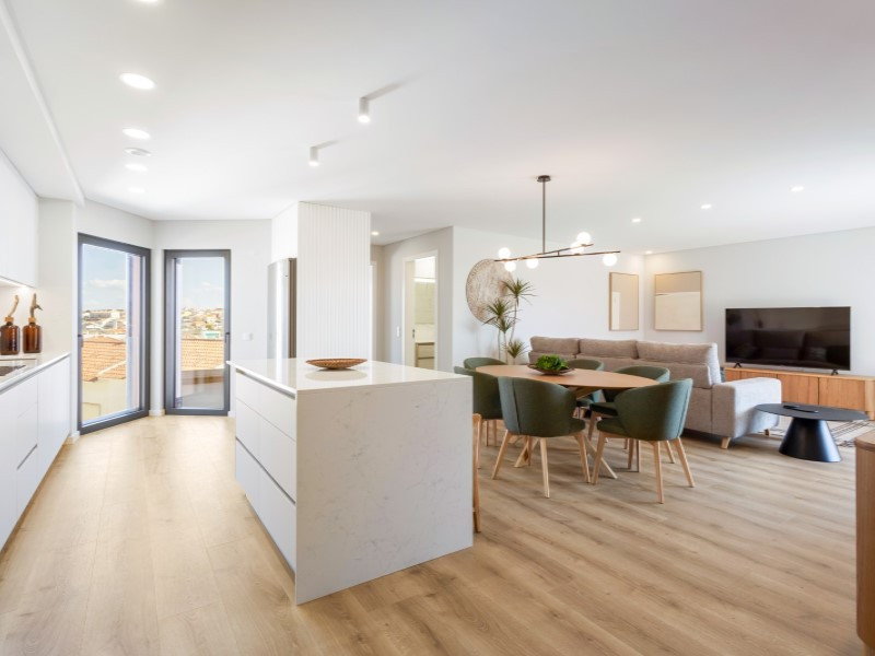 The social area adopts a modern open space concept, integrating living room and kitchen in a fluid way, with a very generous area, ideal for convivial moments. The kitchen, fully equipped.