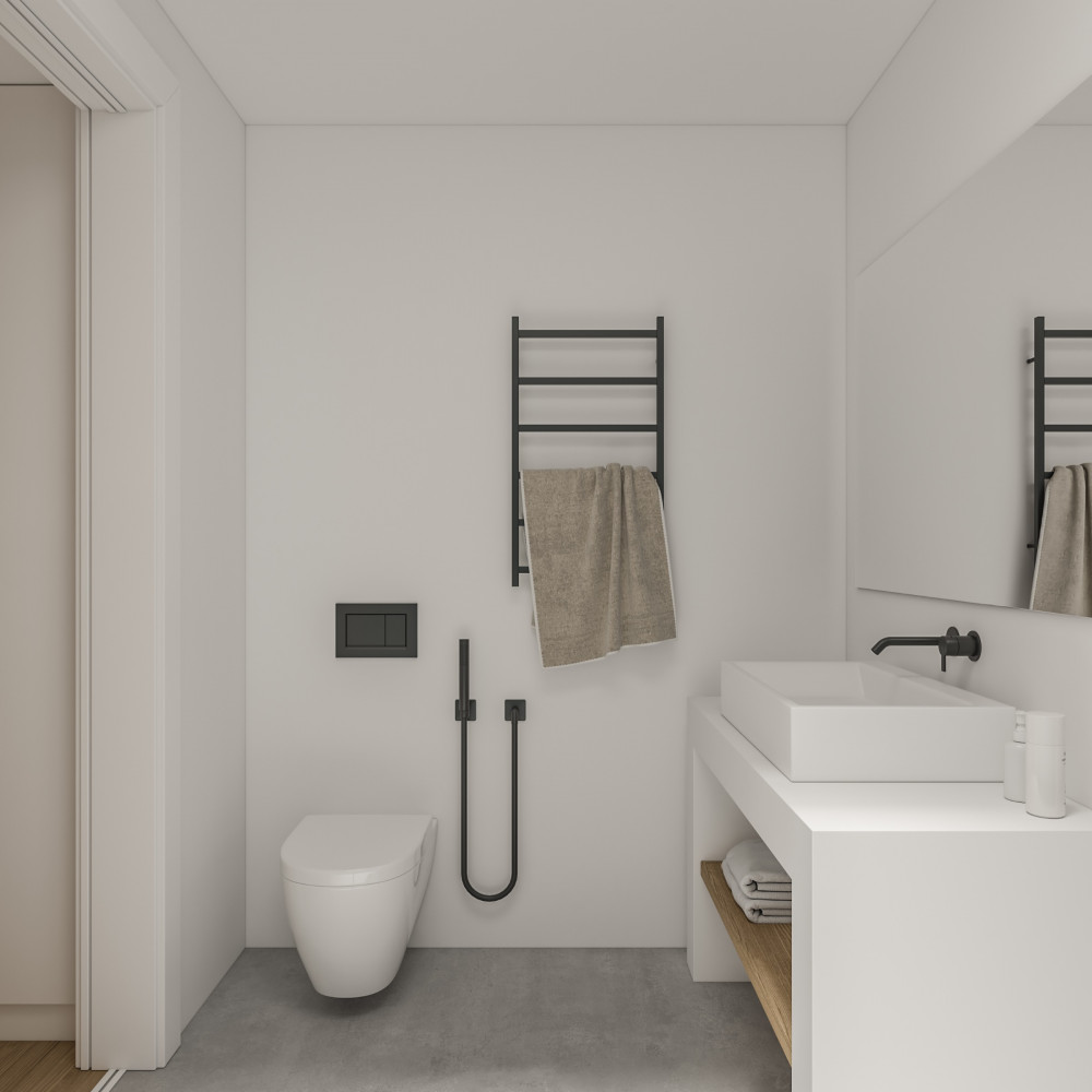 On the ground floor, there are two spacious suites, measuring 28 m² and 23 m² respectively, both with dressing room, as well as an additional bedroom, also with dressing room, and a full bathroom. All spaces benefit from excellent light and an unobstructed view, with the sea as a backdrop.