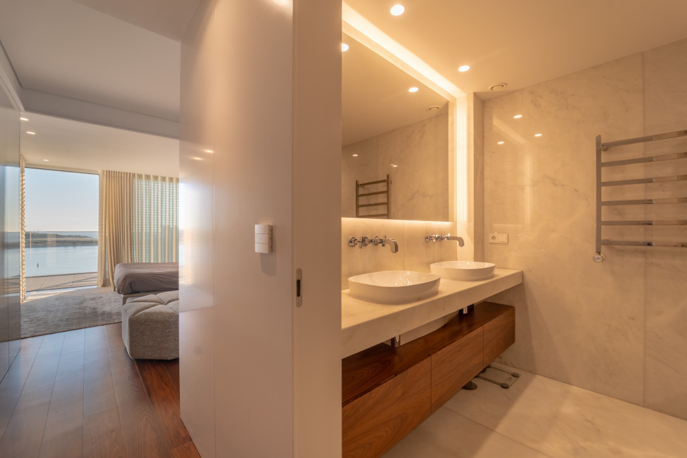 With dual orientation (east and west), the apartment benefits from excellent natural light and panoramic views over the Douro River and the Atlantic Ocean, creating a unique connection between the interior and the surrounding landscape.