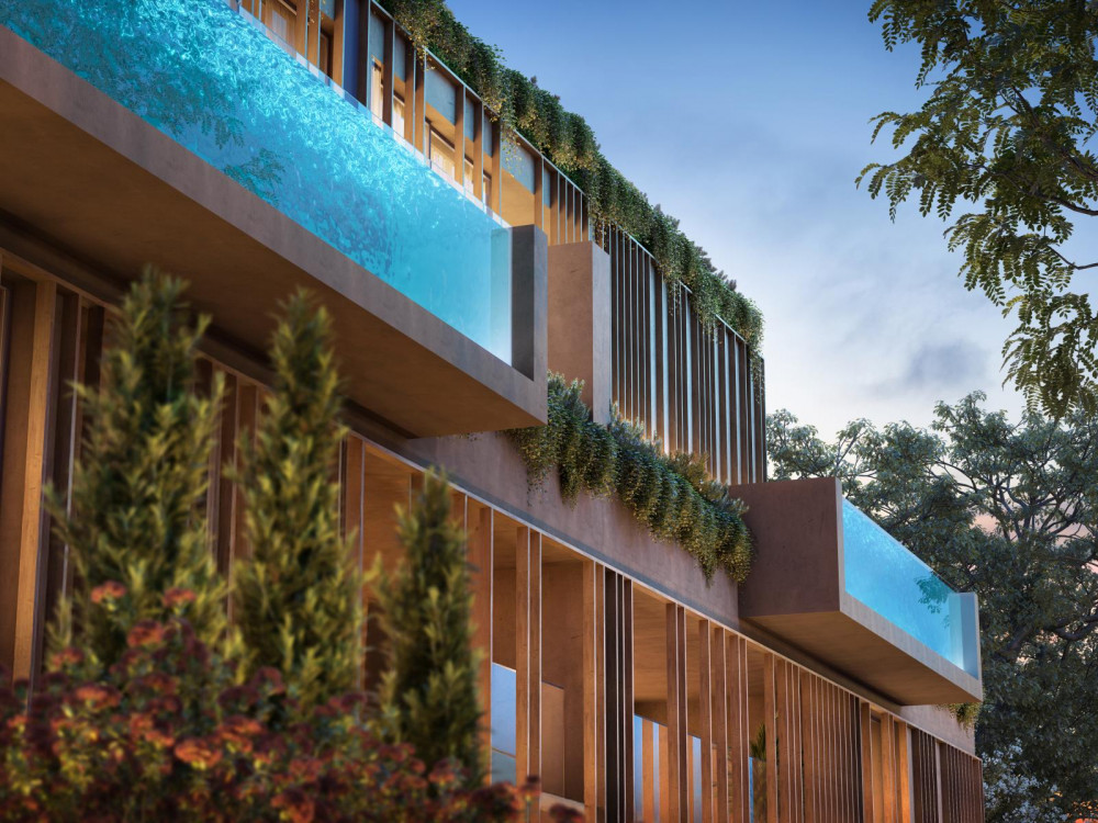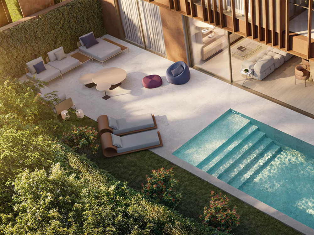 The Garden fractions redefine the connection with greenery, dissolving the boundaries between interior and exterior through private gardens, large balconies and semi-heated pools with glass tops, which create the feeling of water in suspension.