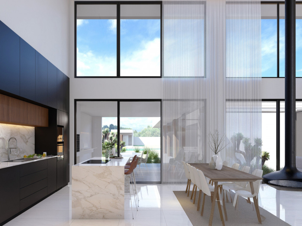 It also has additional outdoor parking, pool support annex, technical area, water hole, integrated air conditioning, hydraulic underfloor heating, central vacuum, home automation and efficient lighting.