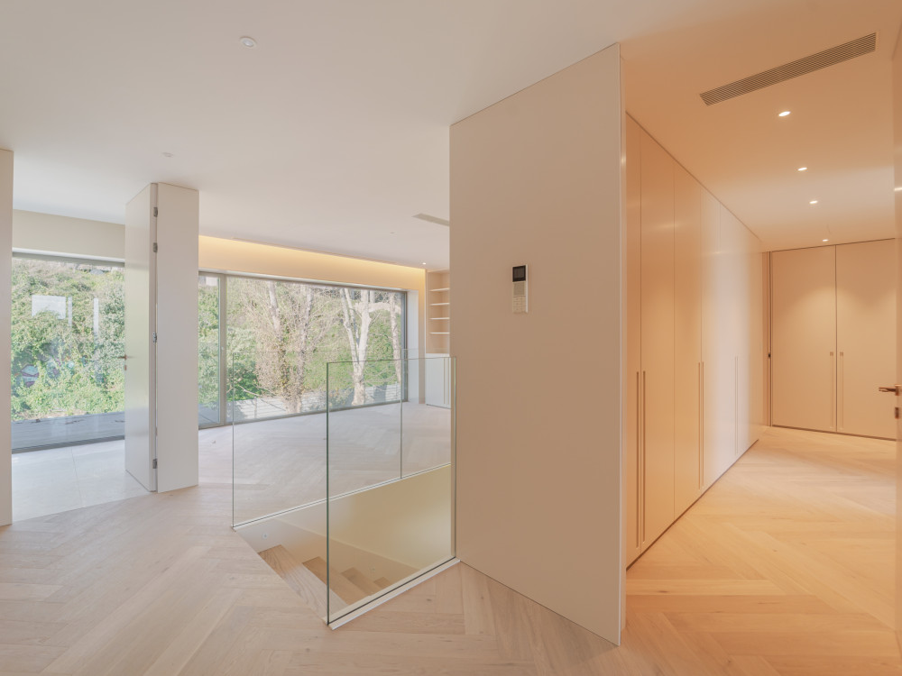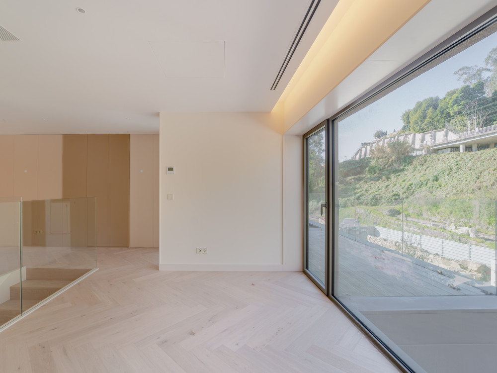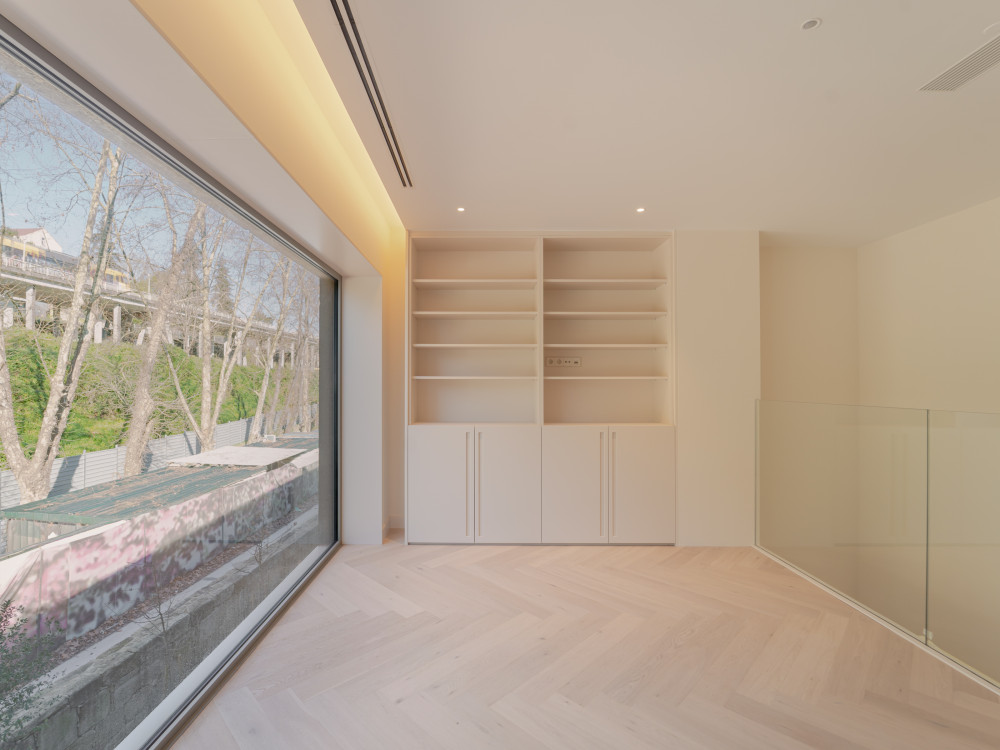 On the lower floor, the living room with 62 m2 is the heart of the house, standing out for the generosity of the areas and the abundant natural light. The large windows frame the Douro landscape and extend to a 30 m2 balcony, creating a true outdoor refuge ideal for moments of leisure and contemplation.