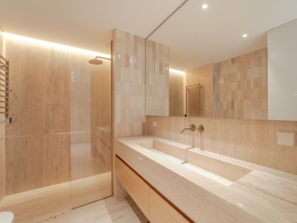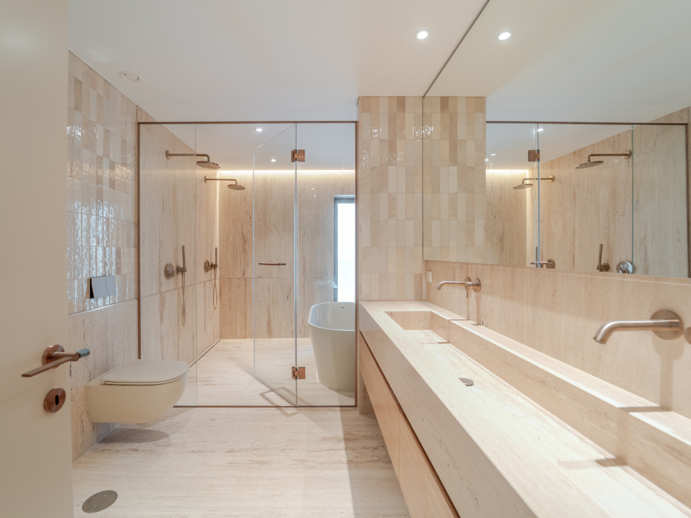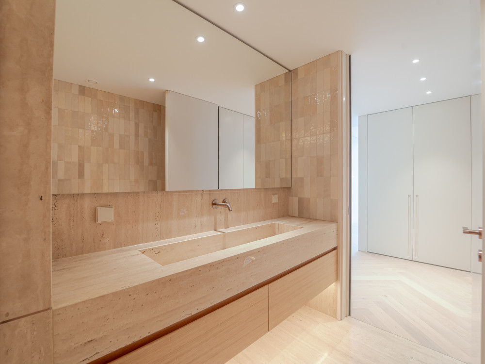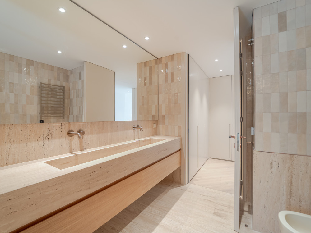 The upper floor is entirely dedicated to the private area, consisting of three large suites with river views, all with generous storage, highlighting the closet of the master suite. The bathrooms, covered in marble, have underfloor heating, electric towel rails, demisting mirrors and premium finishes. The master suite also includes the exclusive Vasca Bay bathtub by NIC Design.