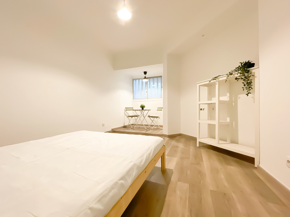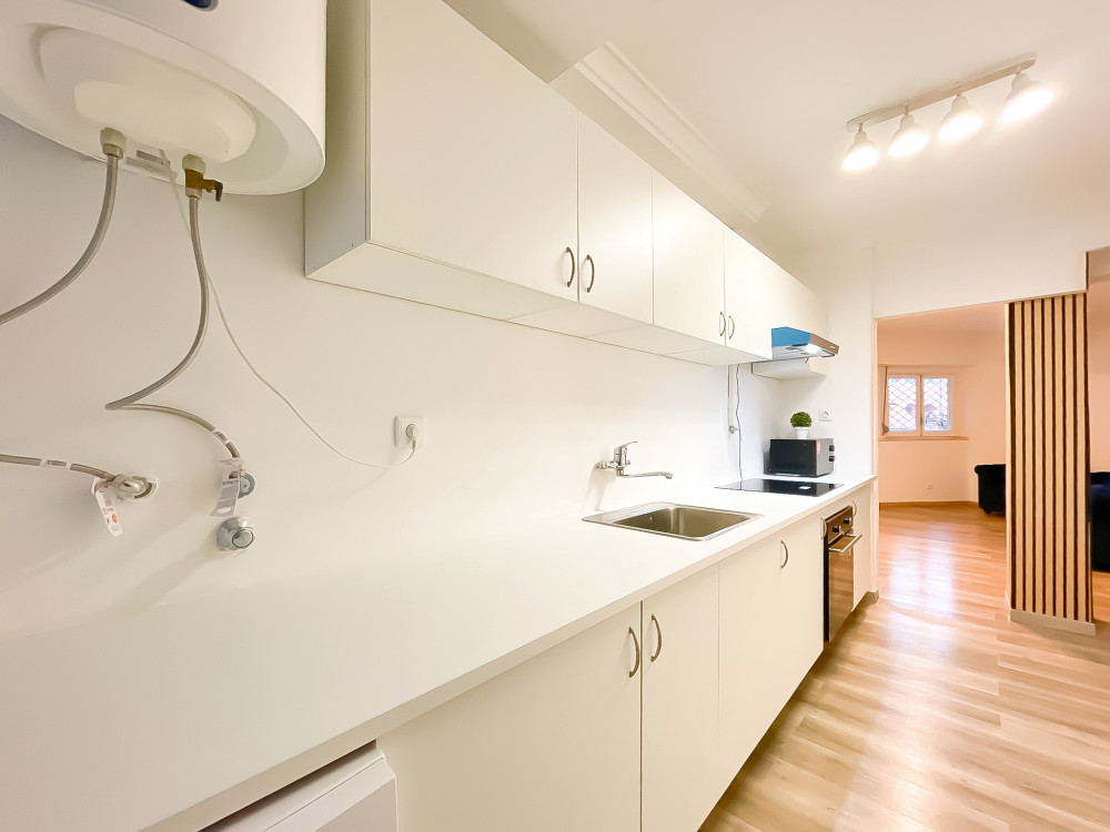 Composed of a living room open to the fully equipped kitchen with modern appliances, it offers a practical and efficient area for your day-to-day, with contemporary finishes and functional organisation of the space.