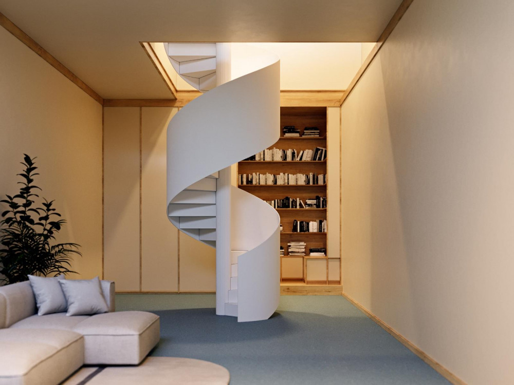 The flat is developed on two levels, offering a clear separation between the social area and the private area, ideal for a contemporary urban lifestyle. The lower area is part of the social area, with an open space living room and kitchen, extending to the balcony, which adds luminosity and a connection to the outside, increasingly valued in the city centre. On the upper floor, the mezzanine accommodates the bedroom area, ensuring privacy and efficient use of space.