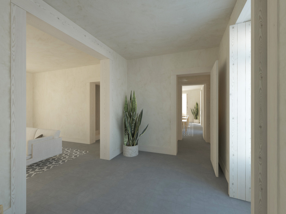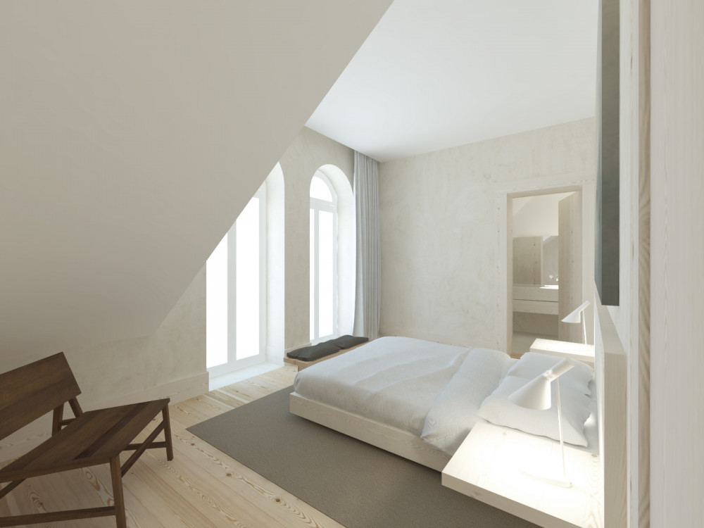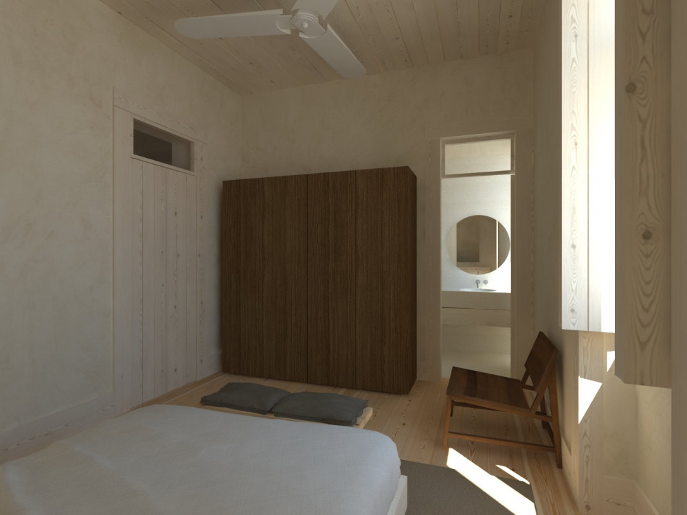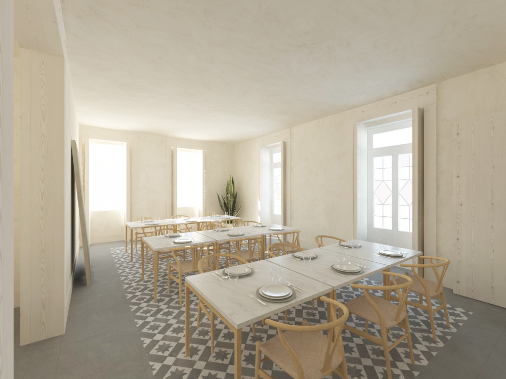 The project provides for functional distribution over three floors: on the ground floor, there is the reception, living area, breakfast room, kitchen, sanitary facilities and a private outdoor patio with swimming pool, providing an environment of leisure and comfort for future users. On the upper floors, 10 suites are designed, with areas between 14 m² and 19 m², all with favourable solar orientation, promoting good natural light, and designed to ensure privacy and convenience.