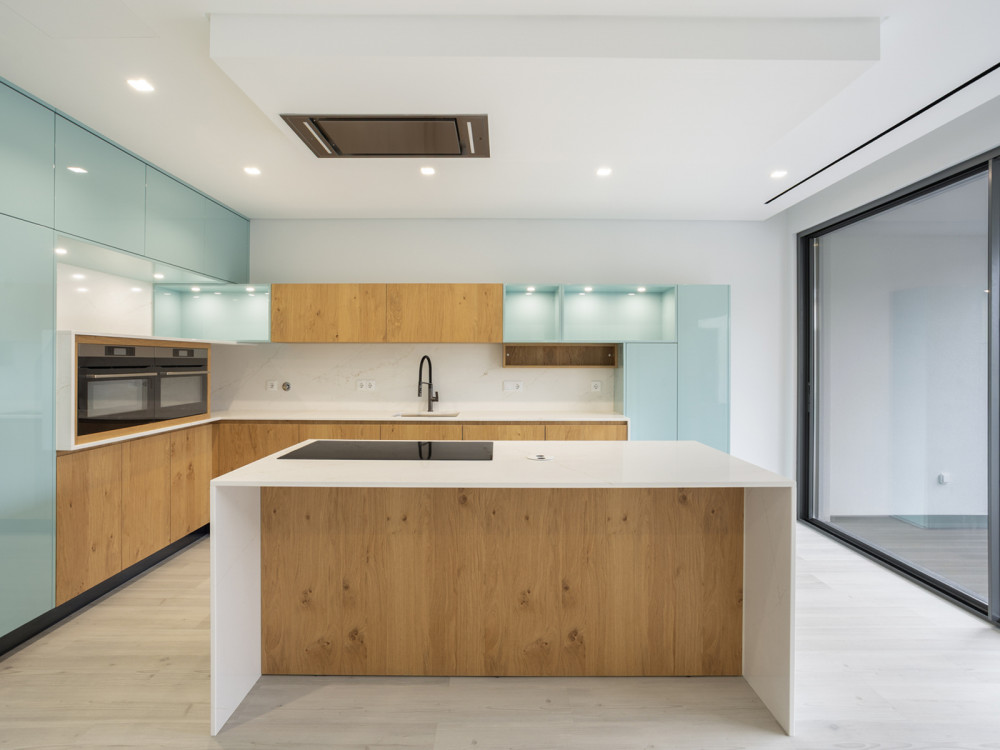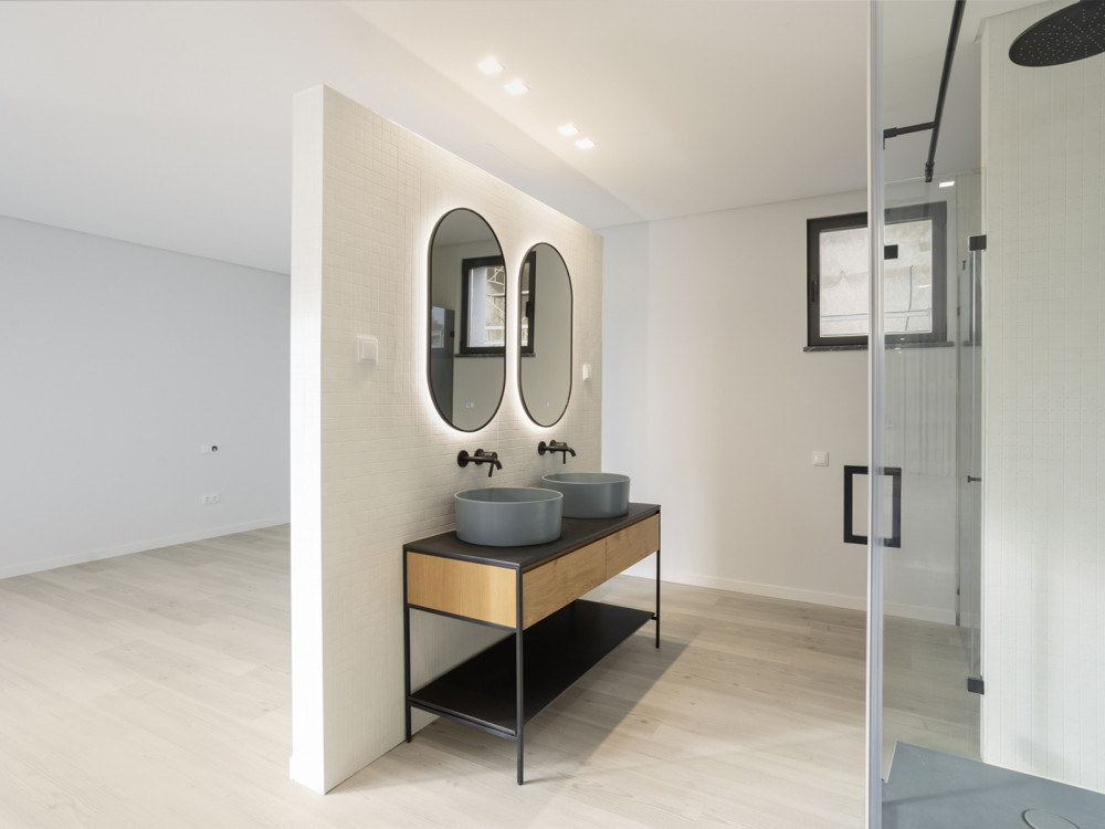 On the ground floor, the entrance hall leads to the living and dining room in open space with direct connection to the terrace and garden, promoting a fluid experience between interior and exterior. The kitchen, fully equipped and with a central island, offers functionality and natural light. This floor also has two suites and an additional bedroom, ideal for an office.