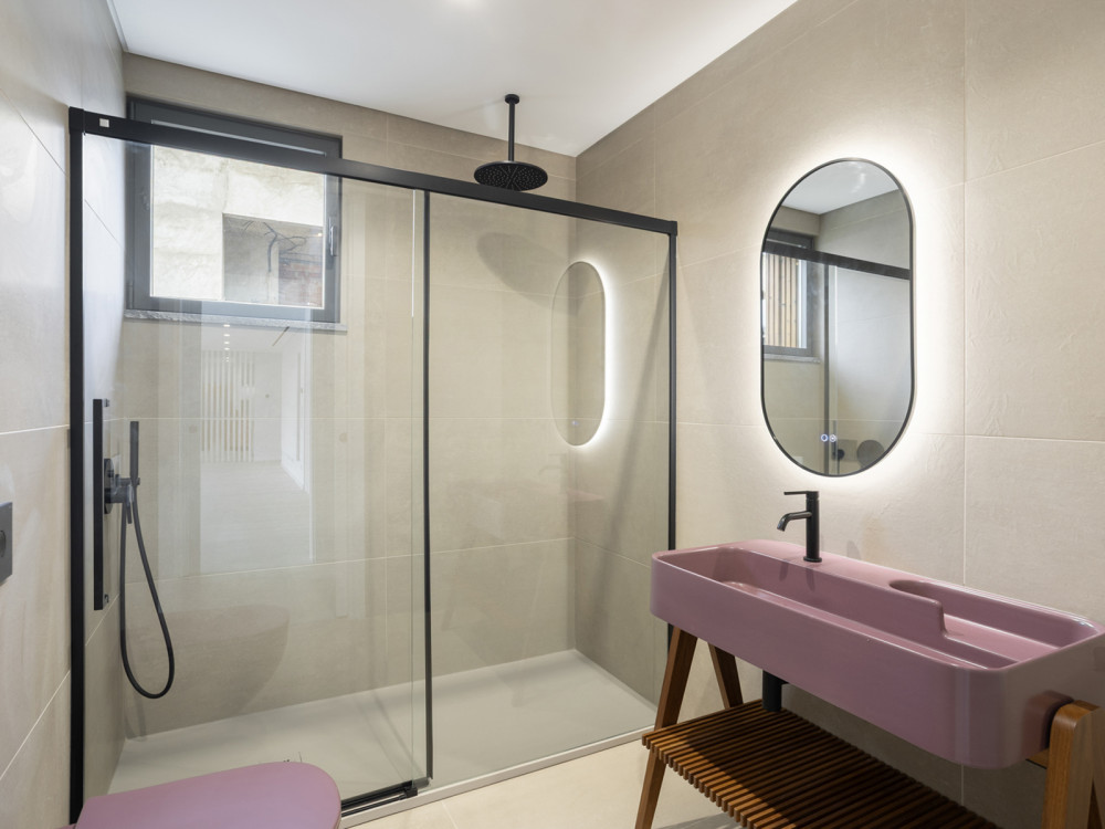The ground floor includes two suites, both with full bathrooms and access to private terraces, providing privacy and views over the garden. On the lower floor, there is an additional suite, multipurpose room, cinema room, spa area, laundry, wine cellar, storage areas and technical space, all with independent air conditioning.