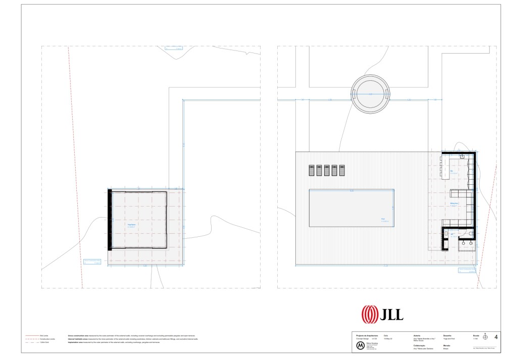 The outdoor area has several terraces, a leisure and dining area with a bar of 15.54 sqm and guest bathroom, and 43.80 sqm swimming pool.