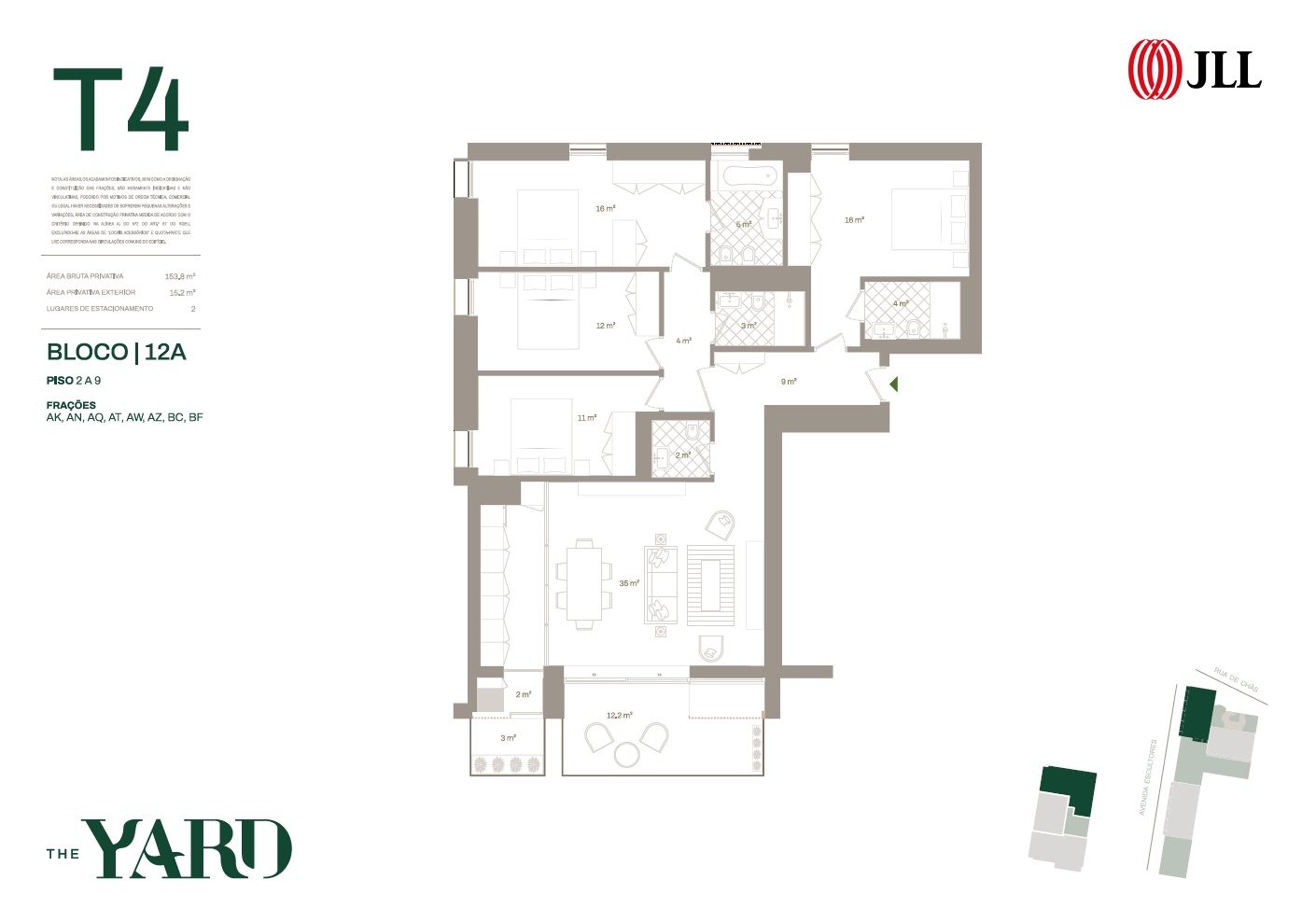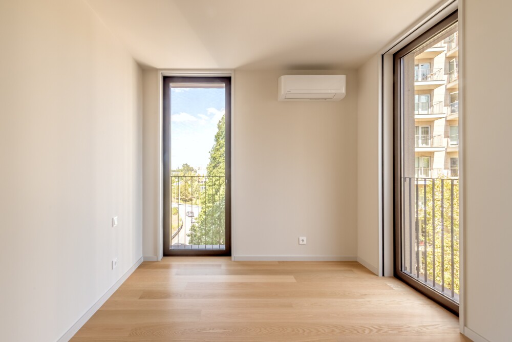 4-bedroom apartment, never inhabited, with 168 sqm of gross private area, two balconies with a total area of 16 sqm, and two parking spaces, located in the gated community of The YARD, near Jardins da Arrábida, in Vila Nova de Gaia, Porto.