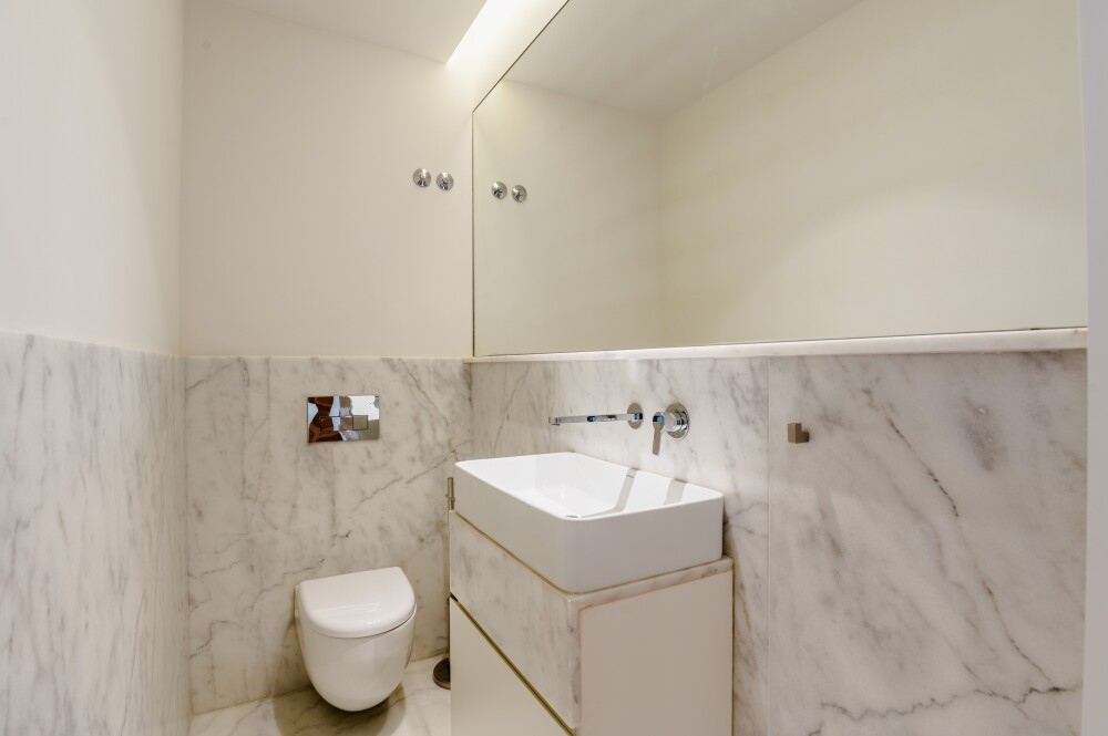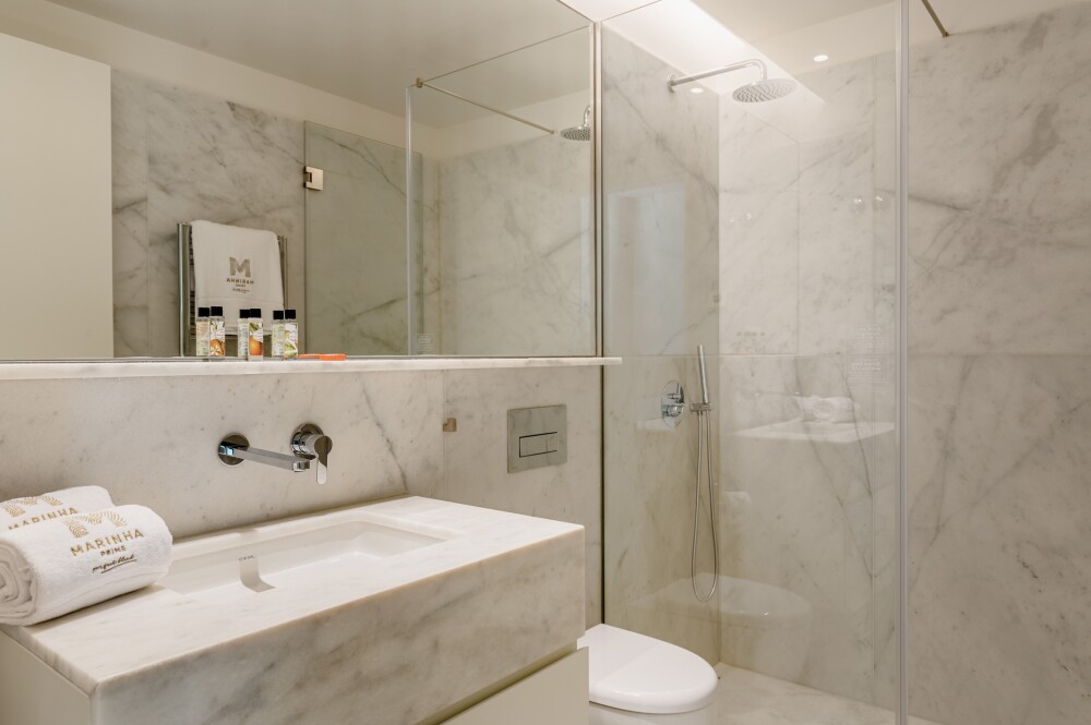 Notable for its quality finishes, heated bathroom floors, and air conditioning.