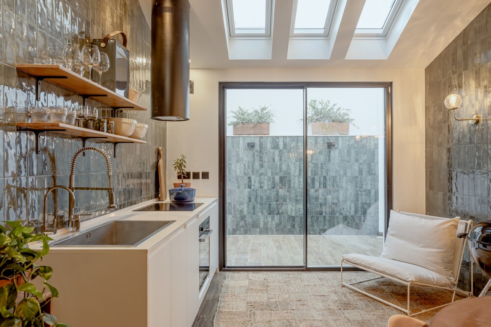 On the middle floor, the current kitchen with access to the terrace will be transformed into the “Green House”, a versatile space that can function as a dining room, office or additional bedroom.
