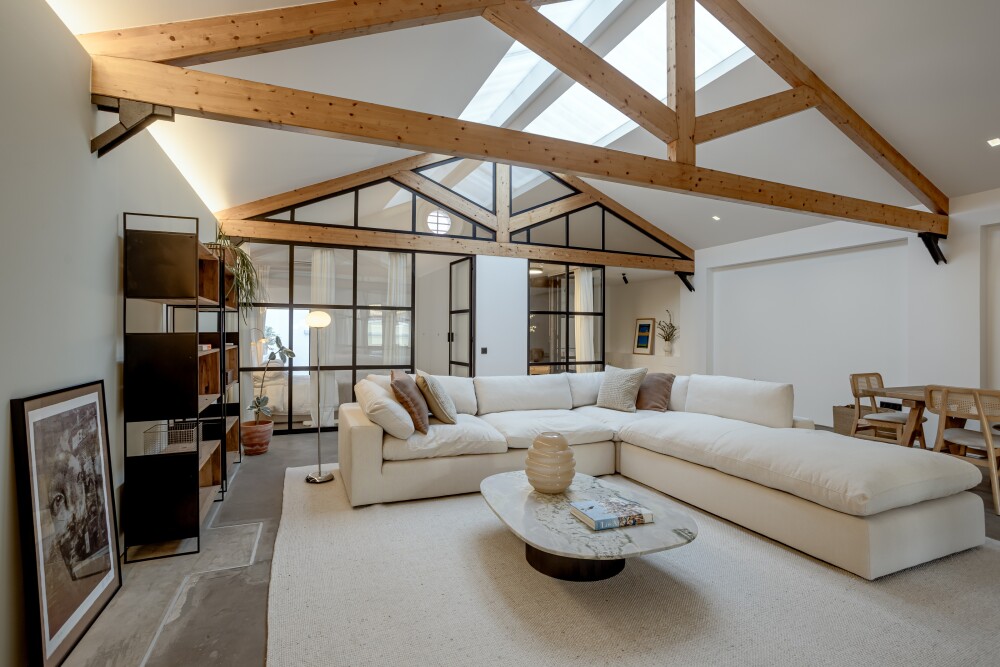 The living room will become more welcoming, maintaining the industrial atmosphere with the use of iron profiles.