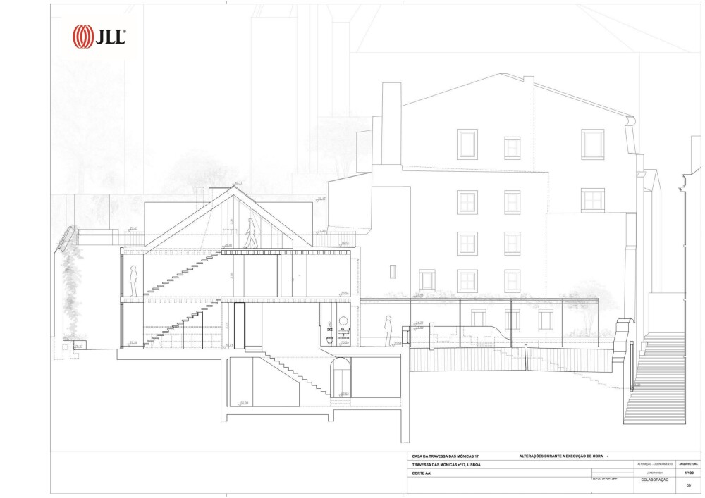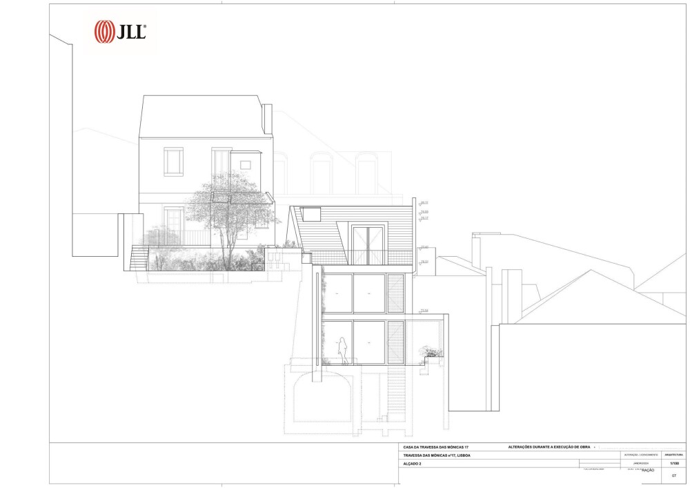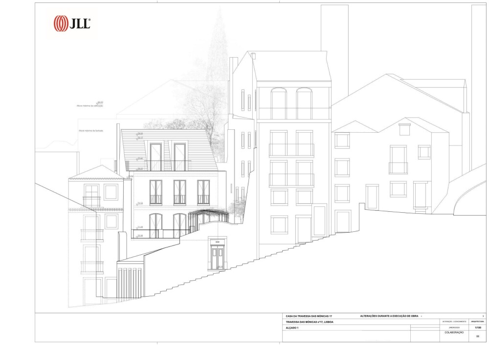 4-bedroom house with 310 sqm of gross construction area, 255 m2 above ground and 55 m2 below ground, with terrace and garden, situated on a 256 m2 plot, located at Travessa das Mónicas 17, in Graça, Lisbon.