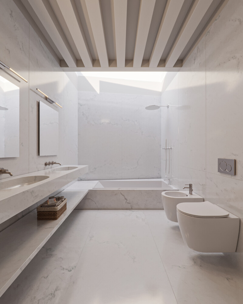 The second and top floor, in the attic, offers a 3.35 m2 support bathroom and a 21 m2 area that can be used as an additional bedroom, with sufficient regulatory height.