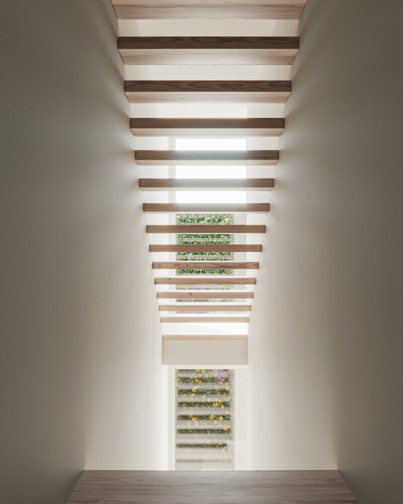 The house is composed of four floors, preserving historical elements such as the plot boundary wall, entrance staircase and conversation seats, pergola, and terrace-balcony.
