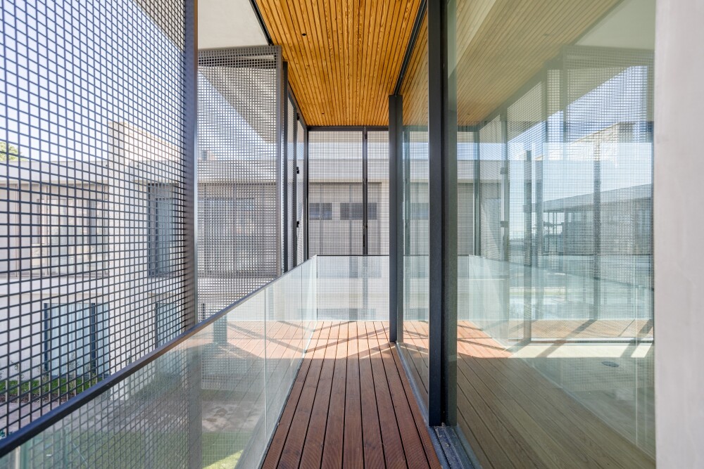 The entrance level houses the entire social area of the home, with a 58 m² living room and an open-plan kitchen that allows interaction with family and friends, with direct access to the deck and pool, promoting an experience that balances and fuses indoor and outdoor spaces.