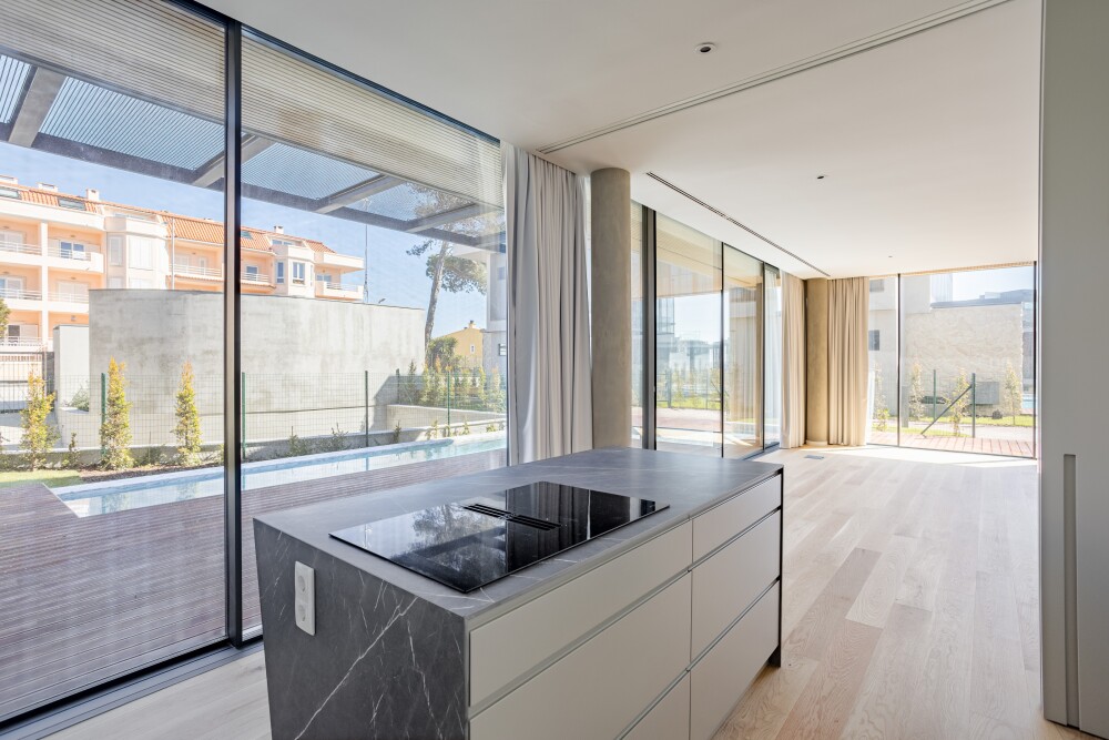 4+1 bedroom villa with a gross construction area of 363 m², featuring a pool, garden, garage, located in the prestigious Boutique Villas condominium, at the entrance of Quinta da Marinha in Cascais.