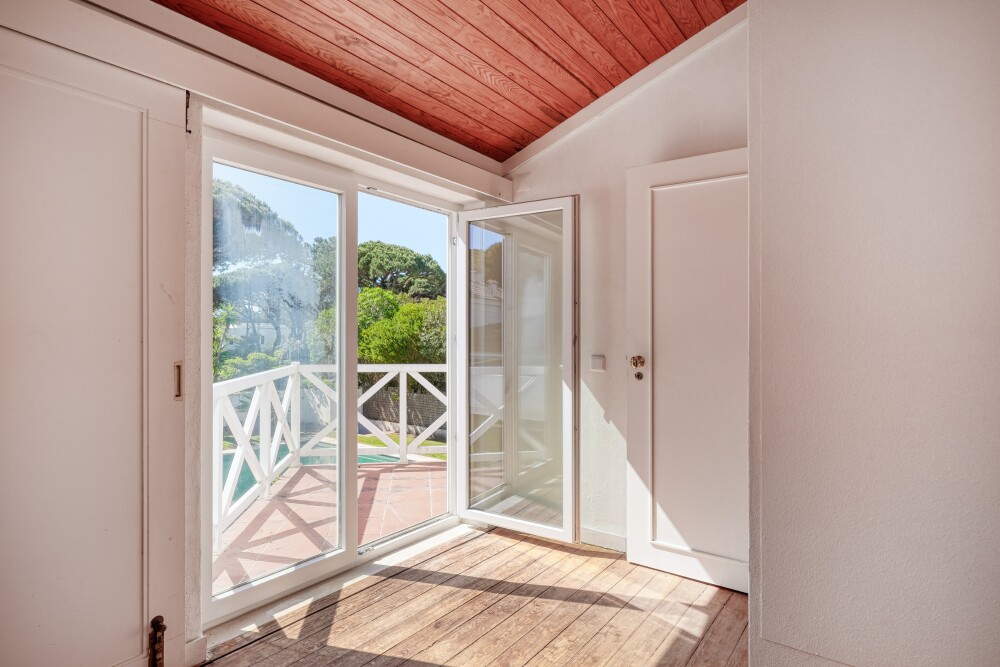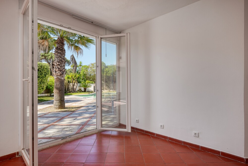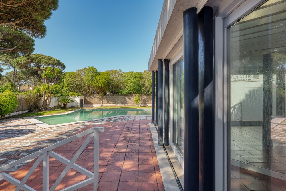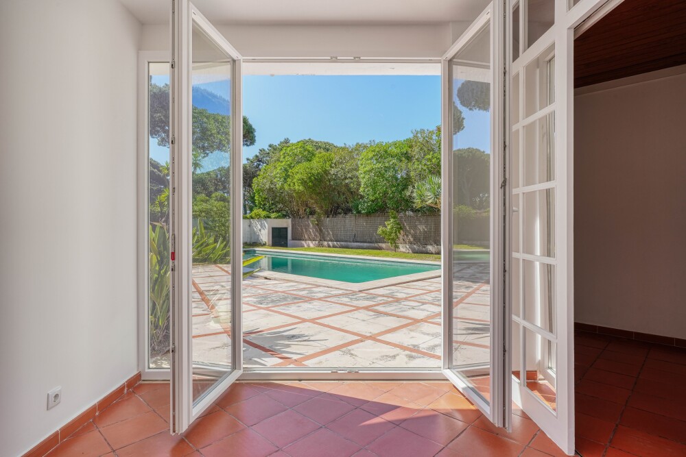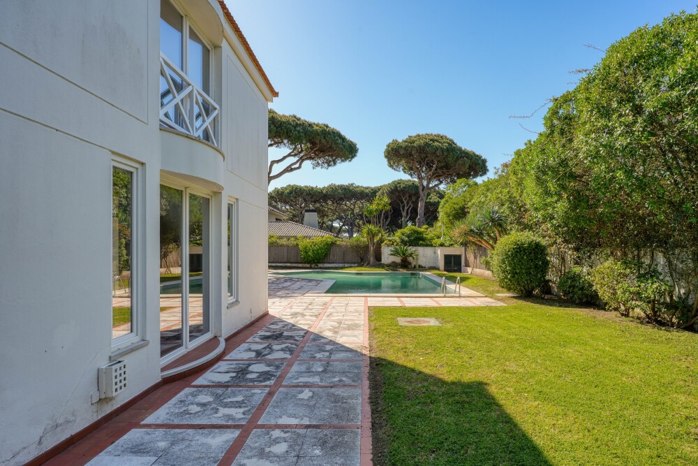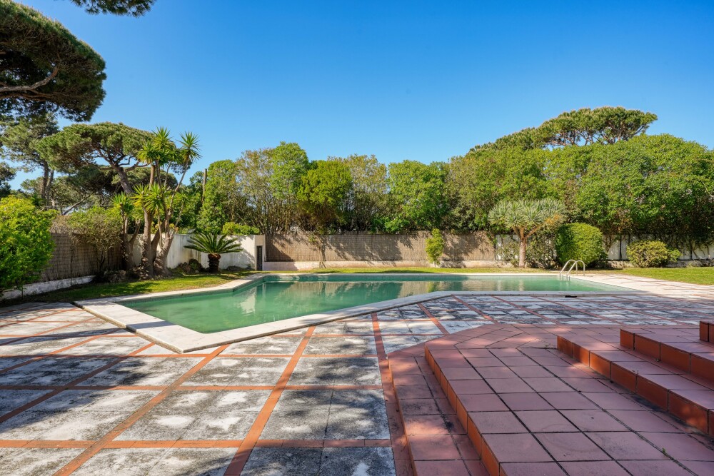 8-bedroom villa requiring complete renovation with a gross building area of 692 sqm and a gross dependent area of 88 sqm, with a garden, swimming pool,enclosed garage for two cars and outdoor parking for multiple vehicles, situated on a 1,500 sqm plot located on one of the most prestigious streets in Quinta da Marinha Sul Cascais.