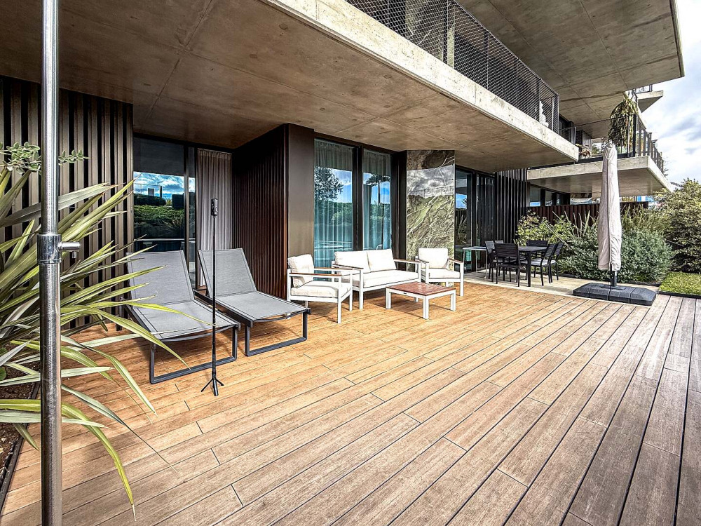 The apartment is located in a particularly privileged and sheltered area of the development, protected from wind and exceptionally quiet, offering a peaceful atmosphere away from road noise.