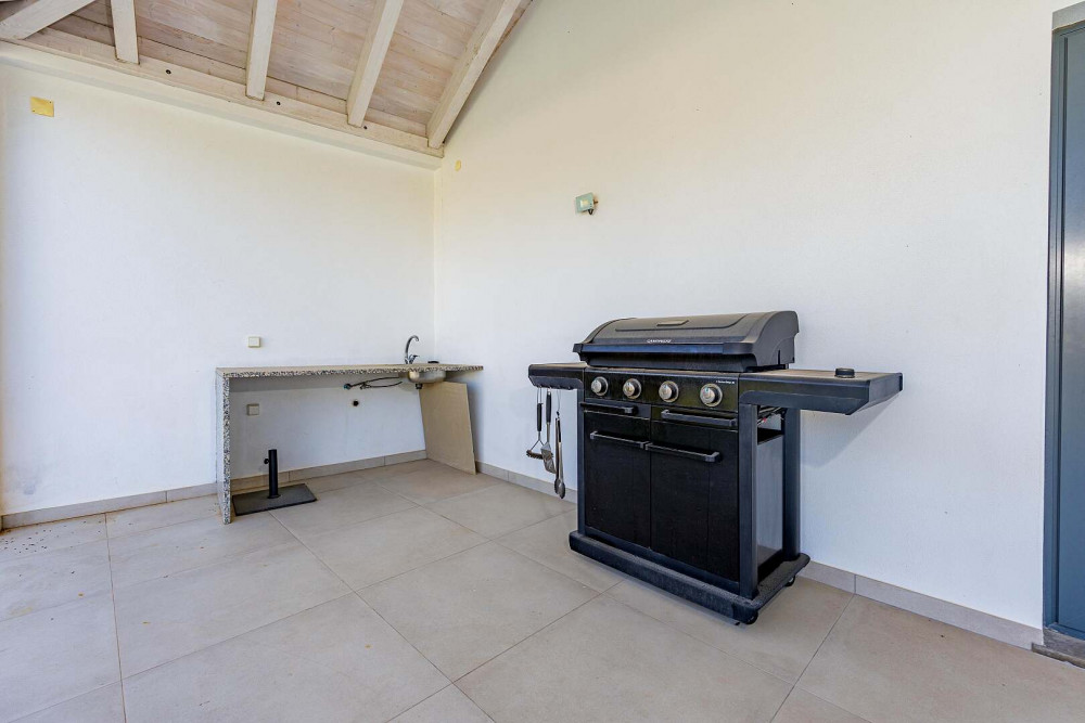 Designed for relaxed Algarve living, the exterior spaces offer privacy, comfort, and versatility throughout the year. A 12 x 4 metre saltwater swimming pool with surrounding sun terraces provides the perfect setting for enjoying the climate, while a covered terrace of approximately 70 square metres, complete with an outdoor kitchen, creates an ideal space for dining, entertaining, or unwinding with family and friends.