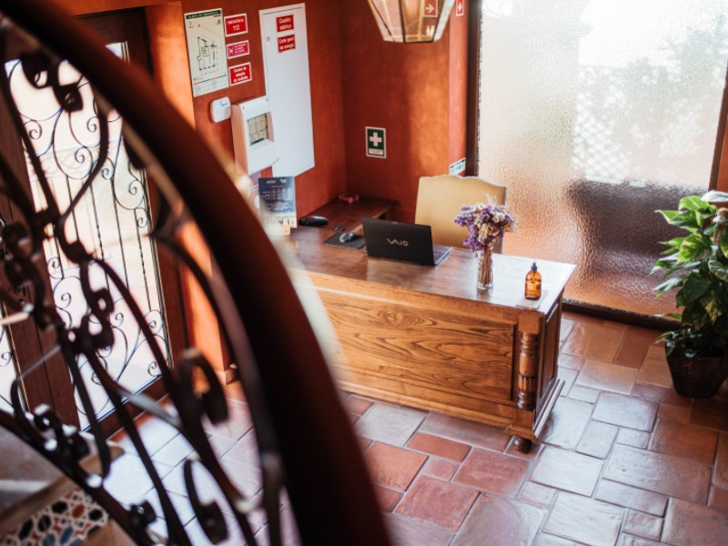 Ground floor: spacious lobby with reception, guest WC, fully equipped kitchen, office, outdoor patio with garden.