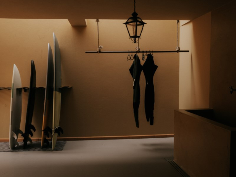 Basement: indoor and outdoor surf area with space for boards and wetsuits, shower and lockers; 3 decorated rooms for massages and holistic studio; WC; storage areas and technical rooms.