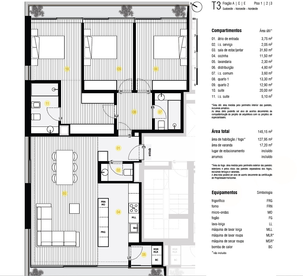 3 bedrooms, 3 bathrooms, one of which is a suite, has a laundry room and a 17.20 m2 balcony