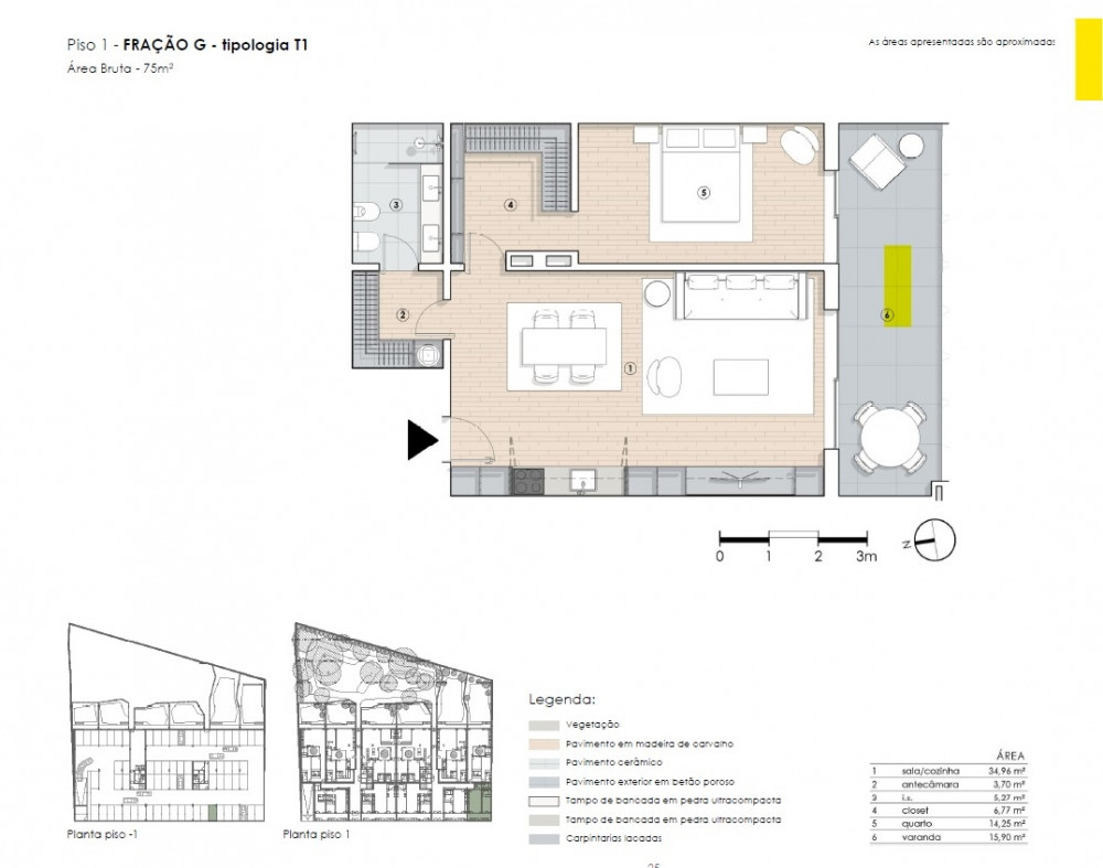 T1 located in the Boss Gardens developmentIt has 75 m2, with a kitchen room measuring 34.92 m2, 1 bedroom with closet bo...