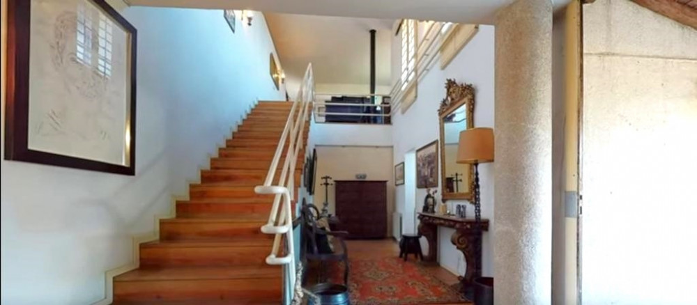 1) The main house was renovated and extended with 3 suites and a living room. All the rooms on the ground floor are made of stone, with access to the garden and large glazed structures. The project was designed by architect Manuel Botelho, who achieved the best of modernity without compromising the identity of the manor house. The house, in the "old" part, has a large kitchen, dining room, living room with fireplace and bathroom, while on the ground floor there are 3 suites, an office, porch and a bathroom.