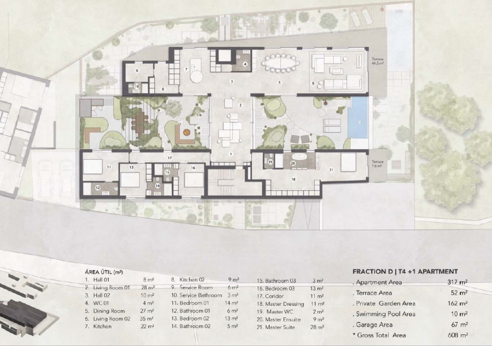 Open and chic spaces, perfect for relaxing, entertaining, and family gatherings, each with private gardens that blend the daily routine indoors and outdoors.