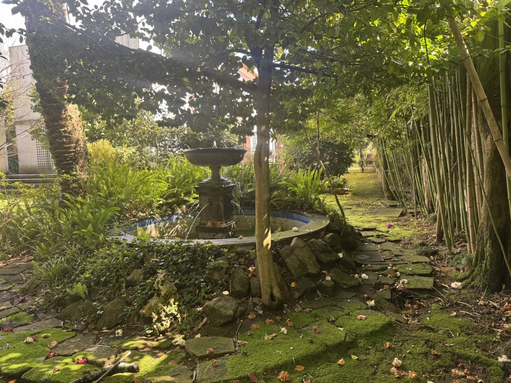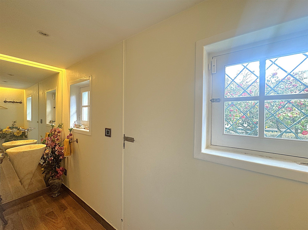 The garden is approximately 1300 m2 with four orientations, has automatic irrigation, a water well and a beautiful fountain original to the house, has a variety of fruit trees and many species of flowers such as lemon trees and camellias.