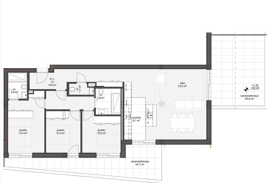 Very cute apartment in a gated community, with an entrance hall, a full bathroom, a fully equipped kitchen with hob, oven, microwave, extractor fan, dishwasher, washing machine and a Bosch fridge-freezer, and an open-plan living room with a terrace facing south and west, a suite and two bedrooms, facing south with a terrace.