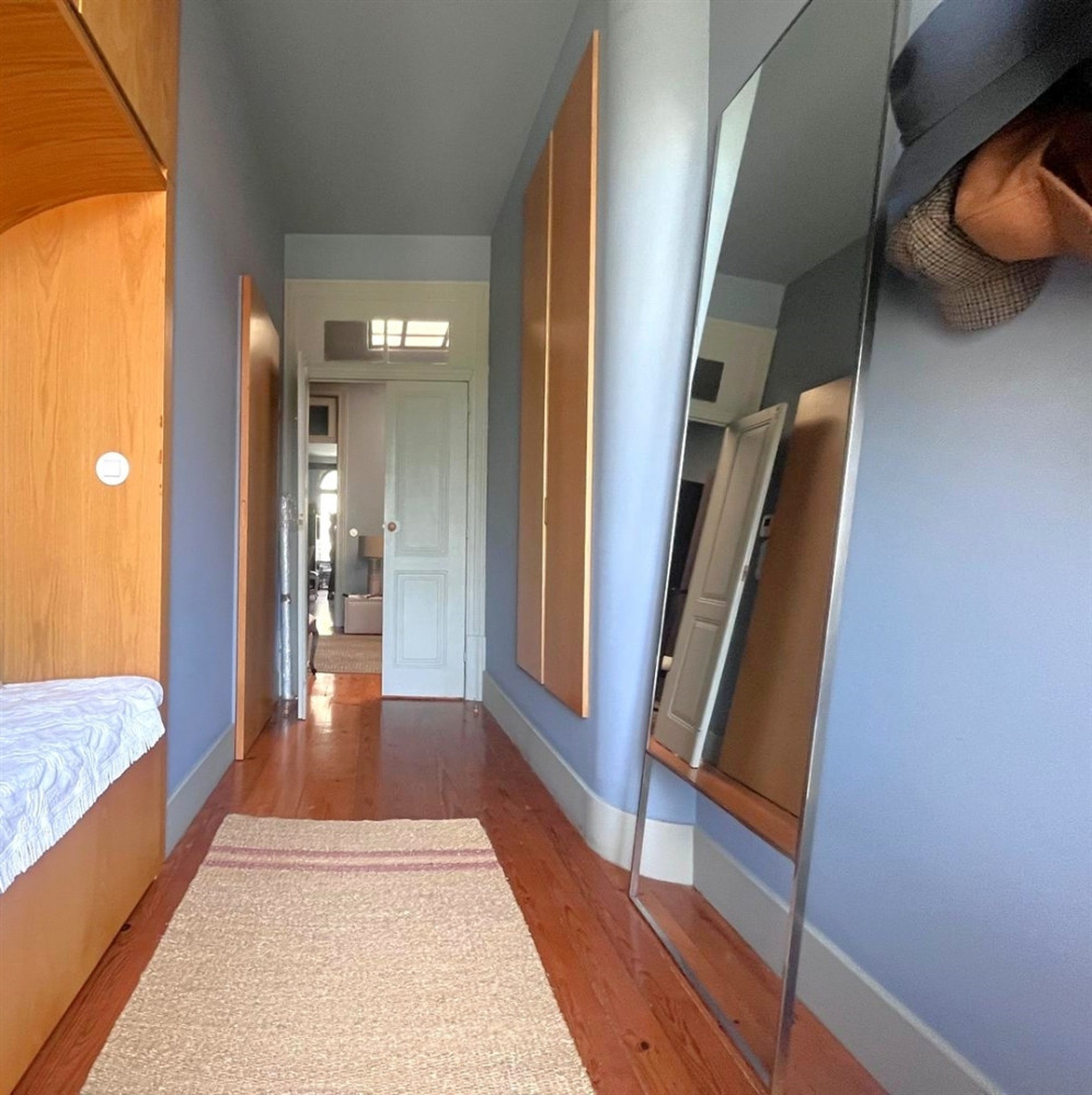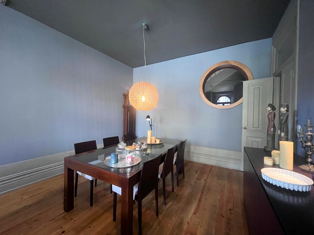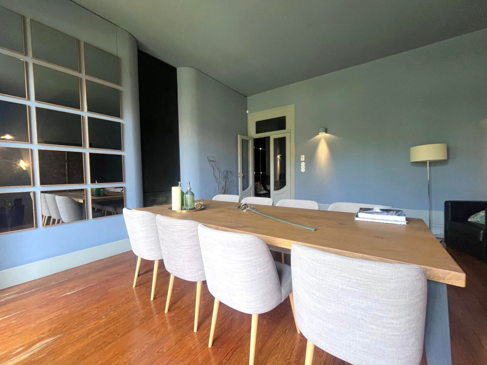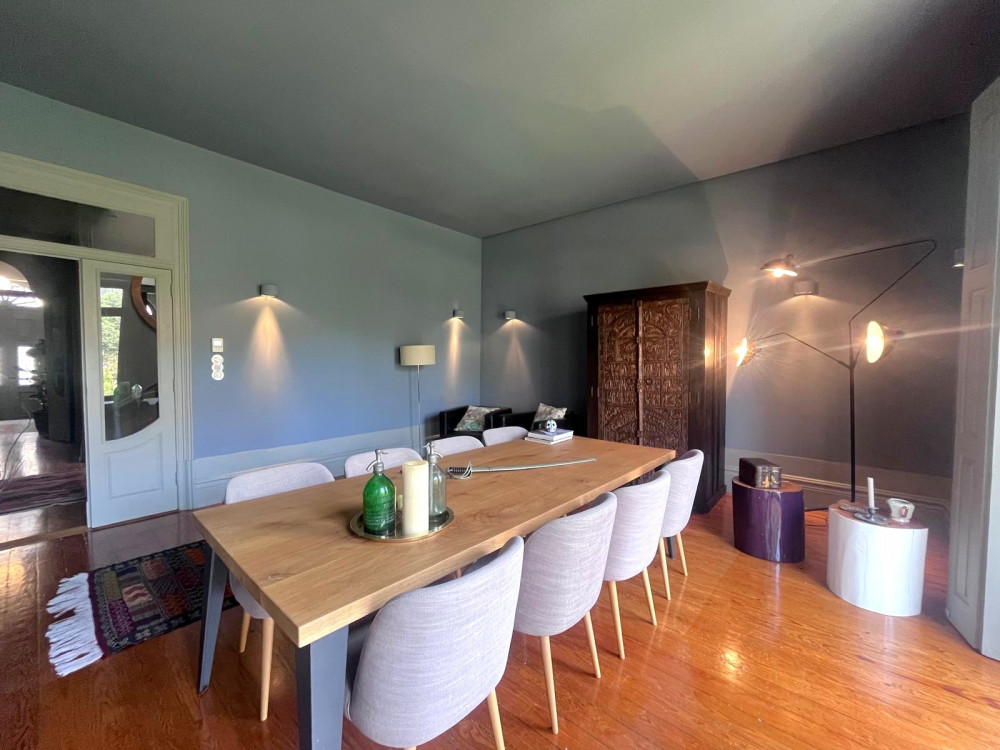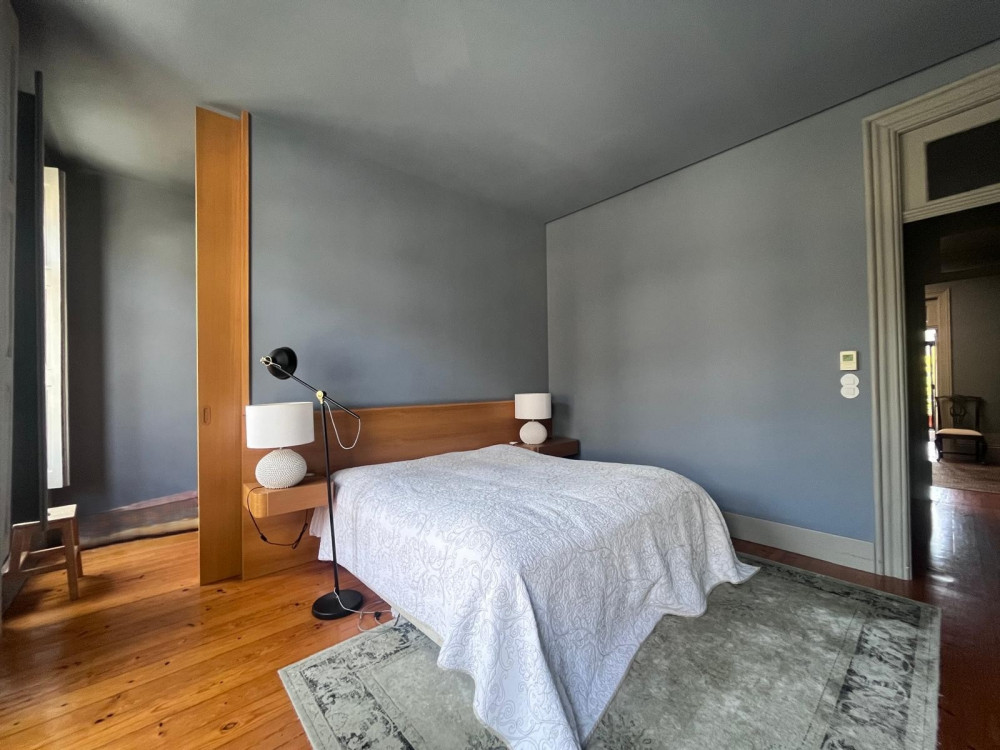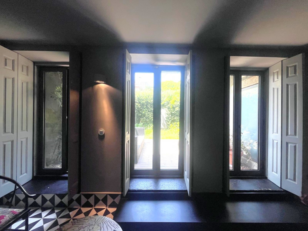 Charming house renovated in 2015 that preserves the original character of the period, maintaining the ornate facades and ceilings, while adopting the latest standards of quality and functionality. The project, designed by architect Nuno Rodrigues, stands out for its sober and elegant design, which favors and interconnects the light between the internal and external spaces, thanks to its privileged solar orientation and two fronts.